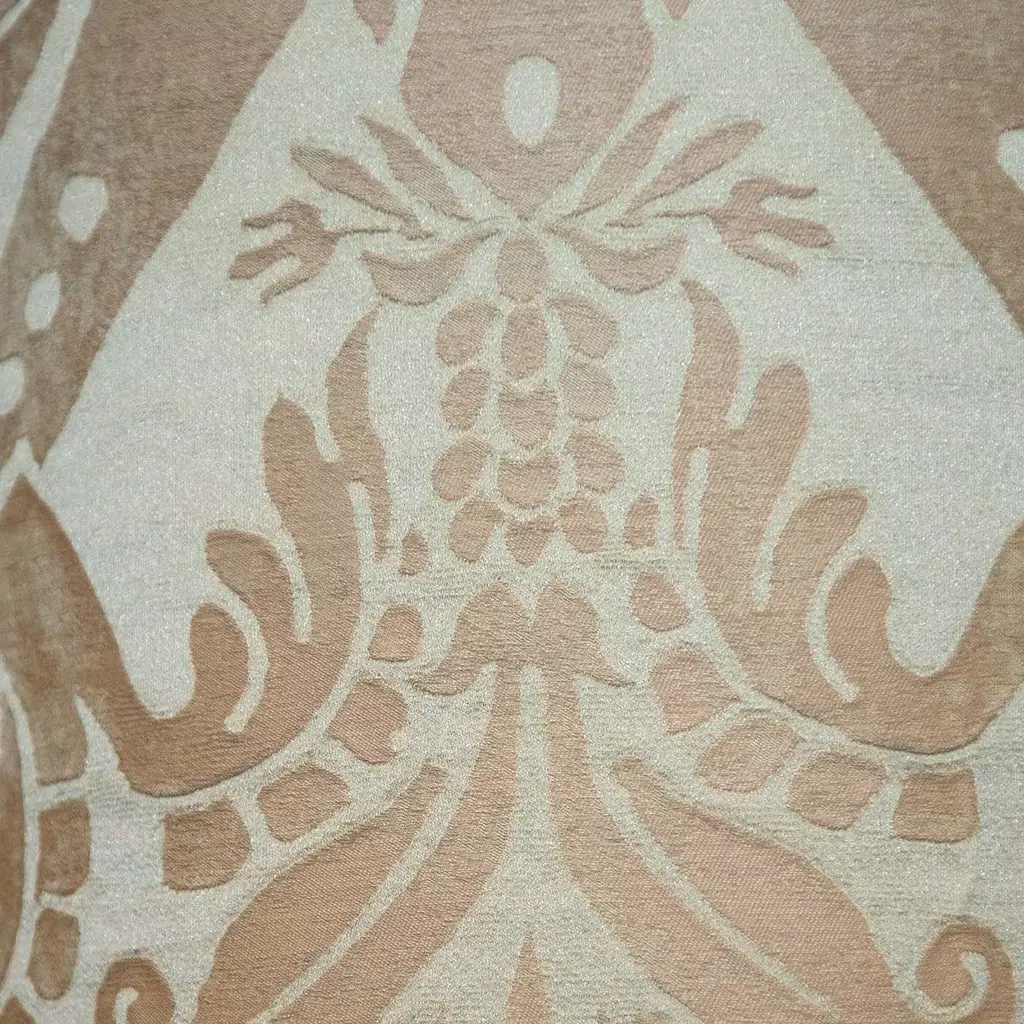 Perfect for the living room, dining room or bathroom, the elegant Florentine Damask Lighting Fixture is crafted with a light iron structure and features a shade in silk fabric with a damask pattern and finished with matching trim. This fixture is designed for one light yet still provides an excellent level of illumination.