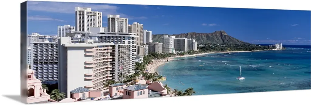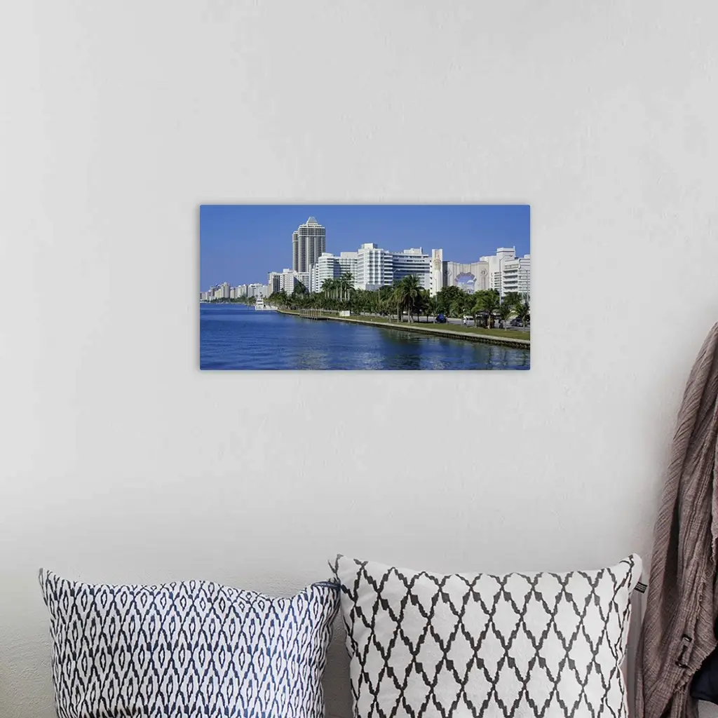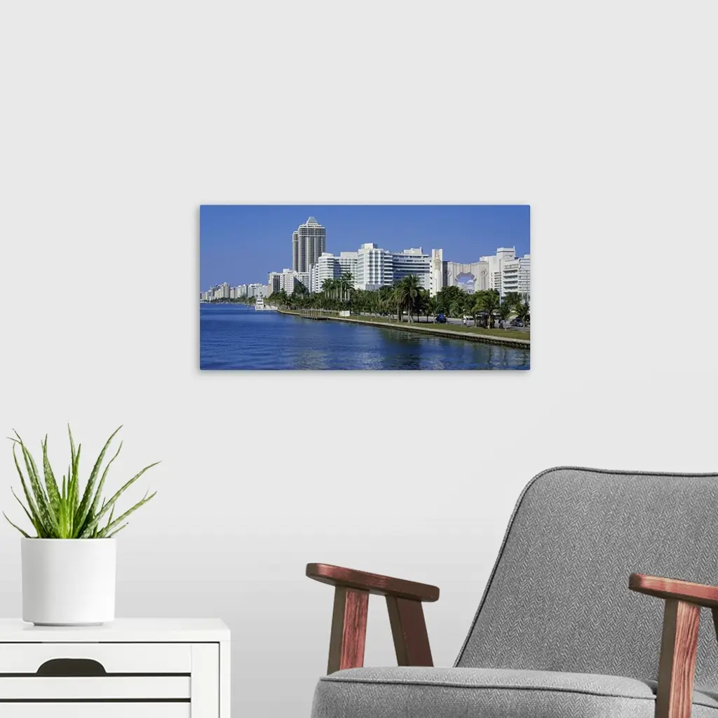 Florida, Miami, Miami Beach, Panoramic view of waterfront and skyline wall art for home and office decor. Discover canvas art prints, photos, mural, big canvas art and framed wall art in GreatBigCanvas.com's varied collections.