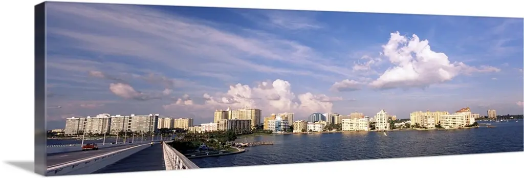 Florida, West Palm Beach, Panoramic view of the waterfront and skyline wall art for home and office decor. Discover canvas art prints, photos, mural, big canvas art and framed wall art in GreatBigCanvas.com's varied collections.