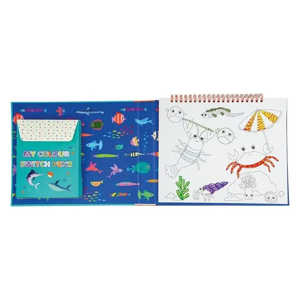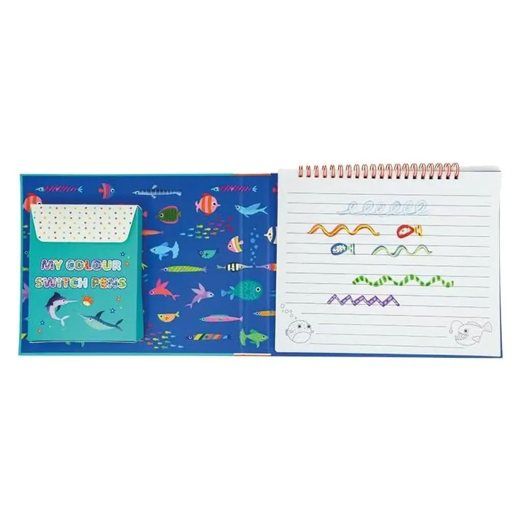 Dive into a world of creativity with the Floss & Rock Colour Switch Magic Set – Ocean. This engaging activity set allows young artists to transform six vibrant colours into twelve using the special magic white pen, fostering imagination and fine motor skills. The spiral-bound pad includes 10 doodle pages, 5 colour-in pages, 5 lined pages for writing, and 2 sticker pages, all featuring exciting ocean-themed illustrations. Compact and mess-free, it's perfect for on-the-go entertainment and encourages hours of artistic exploration.