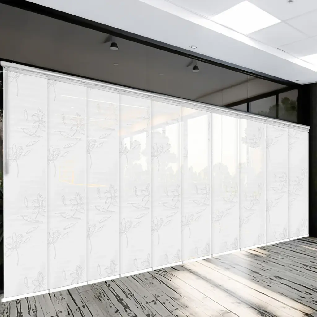 Flourishing White 10-Panel Track Extendable Vertical Blinds 120-218"w