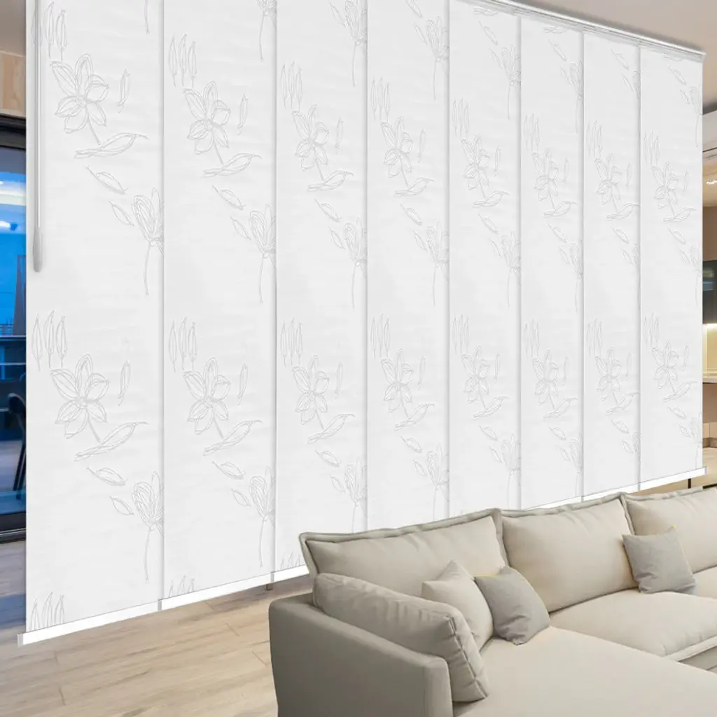 Flourishing White 8-Panel Track Extendable Vertical Blinds 130-175"w