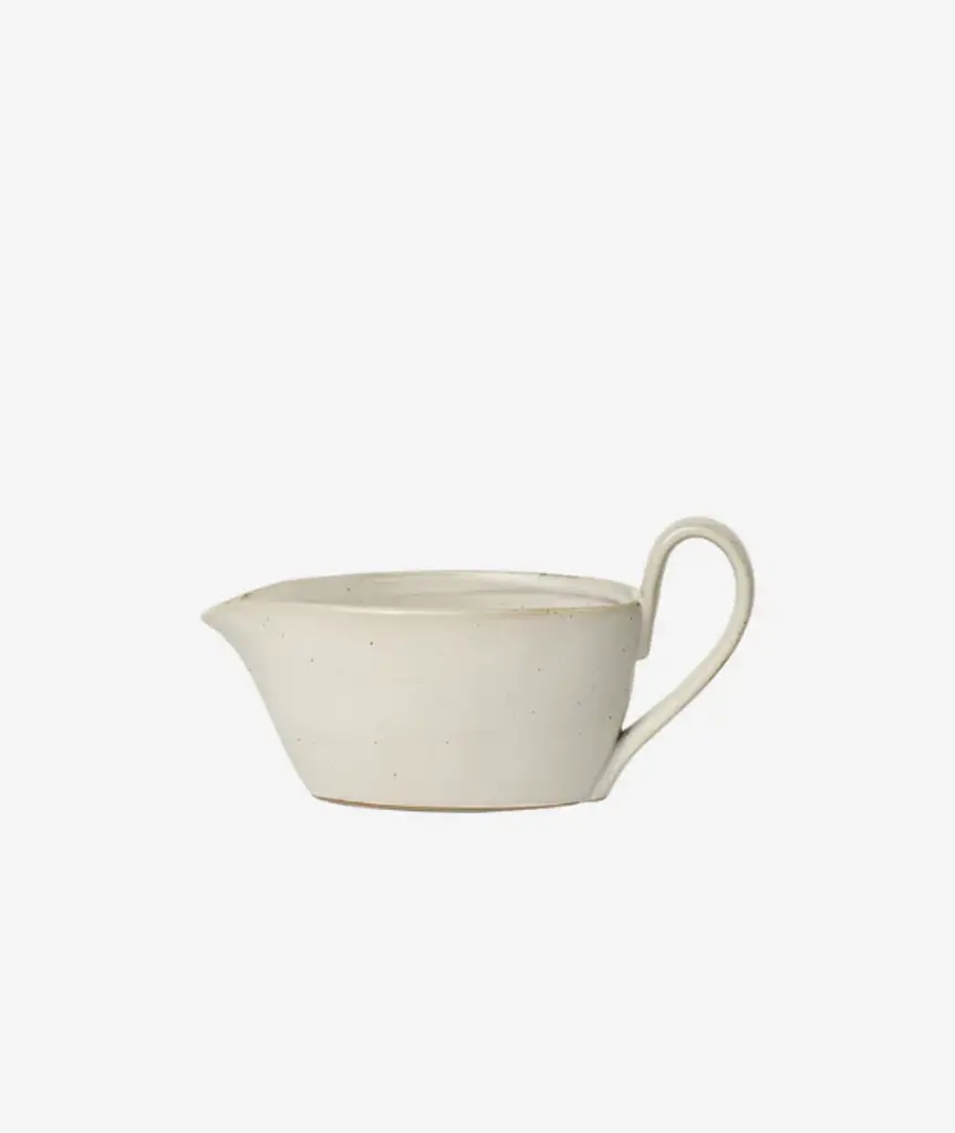 Flow is a series of perfectly imperfect tableware made to modern sensibilities using traditional craftsmanship techniques. All the items are glazed to achieve a unique expression. This graceful sauce boat features an elongated handle that is distinctive to the Flow series and will make an elegant addition to your dinner table.