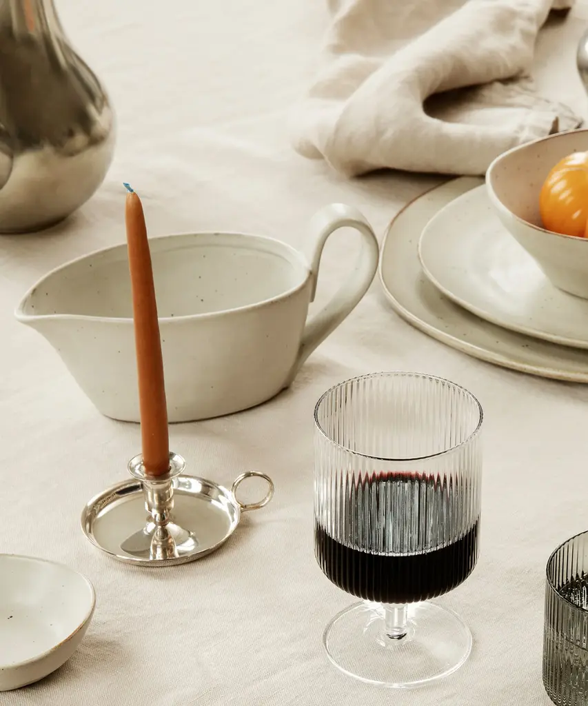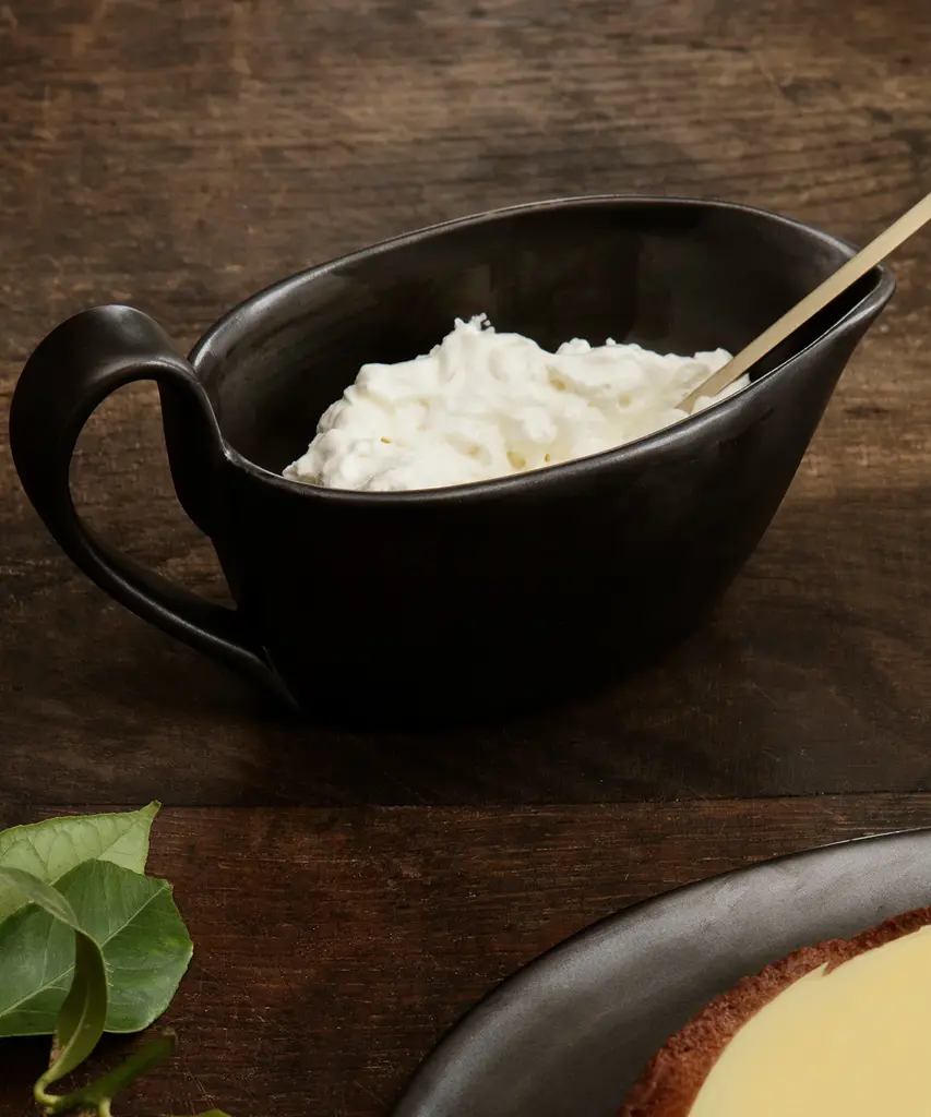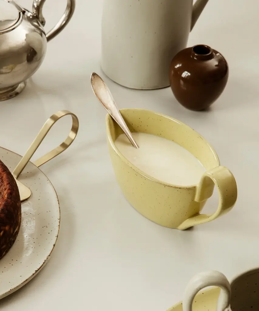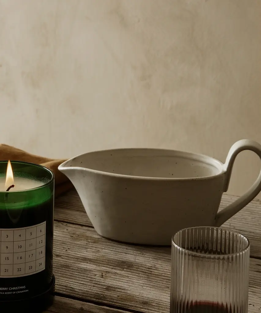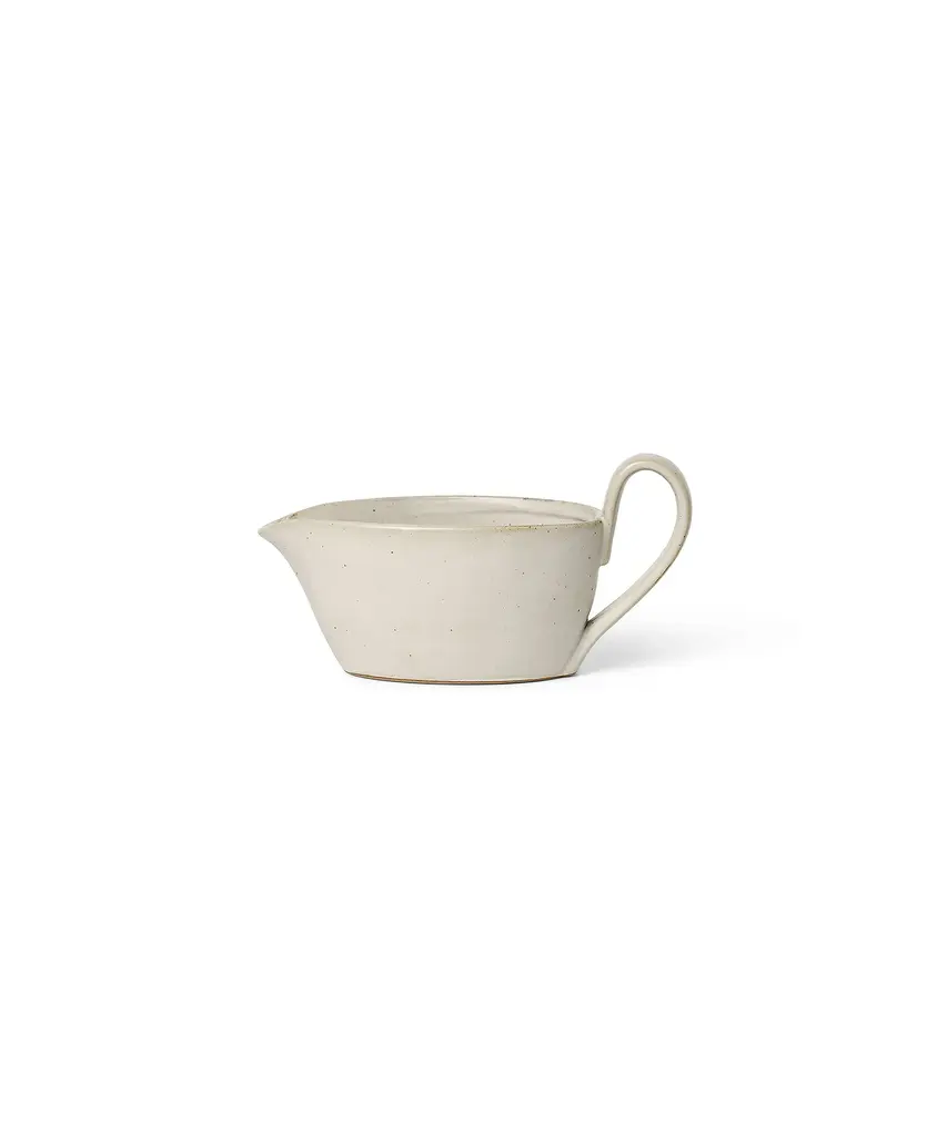 Flow is a series of perfectly imperfect tableware made to modern sensibilities using traditional craftsmanship techniques. All the items are glazed to achieve a unique expression. This graceful sauce boat features an elongated handle that is distinctive to the Flow series and will make an elegant addition to your dinner table.Produced by the Copenhagen-based studio Ferm Living.