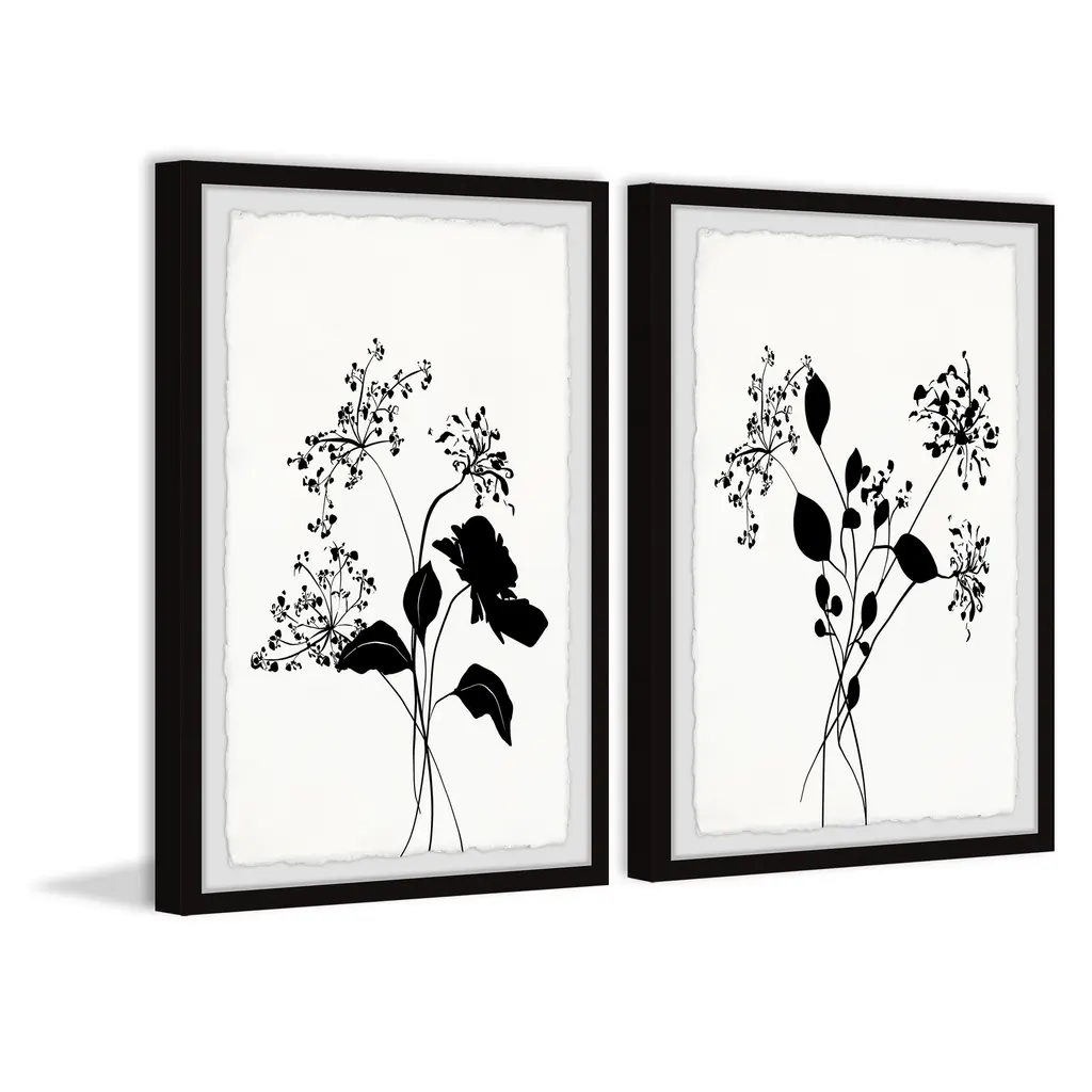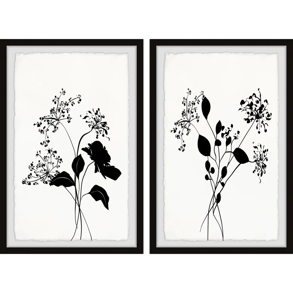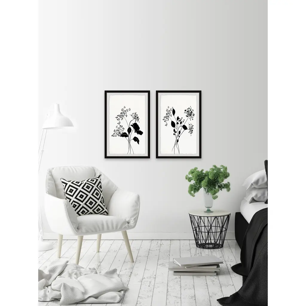 Complete any wall in your house by adding this duo of black and white drawing prints that features two loose bouquets of botanicals. Proudly printed in the USA, this piece is printed on high quality archive paper and professionally hand-framed. With wall-mounting hooks included, this artful accent is ready to hang up as soon as it reaches your front door. • Top quality Giclee print on high resolution Archive Paper • Hand cut deckled edges • High quality durable non-warping frame • Finished under shatter resistant plexiglass • Arrives ready to hang • Includes a certificate of authenticity • Printed in the USA