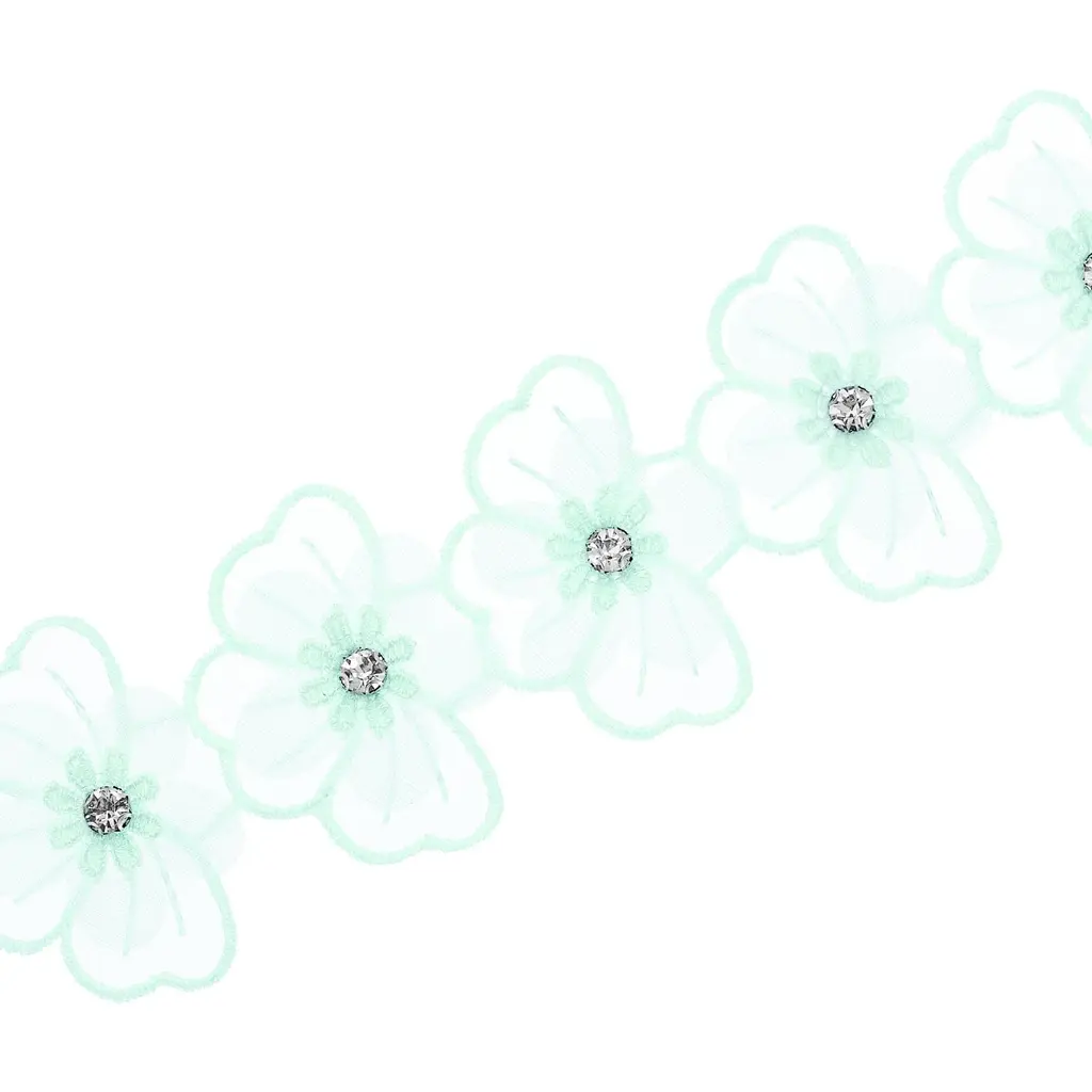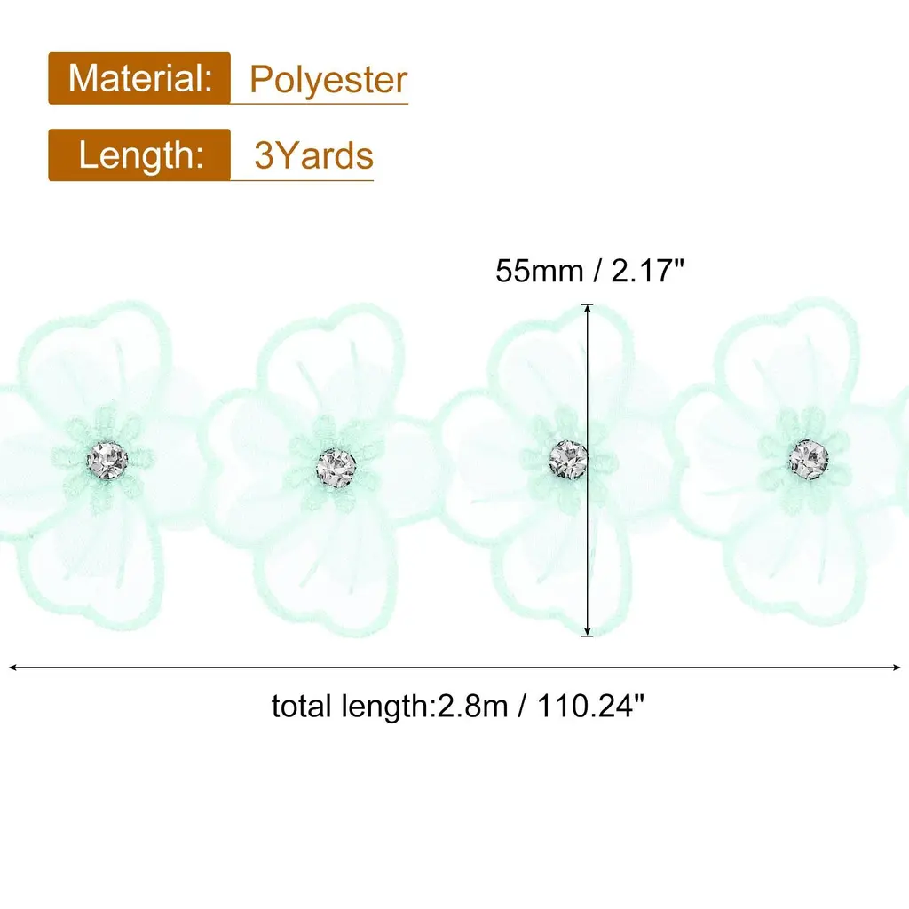 Description:[Soft Material]: It is made of polyester silk, has a soft and comfortable texture, good breathability, color fixation, and a long-lasting lifespan.[Design]: The flower lace Trim Ribbon is designed with exquisite flowers and crystal embellishments, carefully embroidered, the flowers do not easily fall off, showing a unique three-dimensional effect and beauty.[Fashionable And Elegant Style]: From simple to romantic, from retro to modern, it can present a variety of styles to meet the needs of different styles, and the design is more diverse.[Wide Application]: This polyester applique is suitable for wedding dresses, hair flowers, belts, hair accessories, bouquets, bags, candles, floral designs, DIY headbands, craft projects, cards, Decorative gift baskets, decorative home textiles, and other applications.Specification:Color: Light GreenMaterial: PolyesterLength: 3YardsOverall Size: 2.8m x 55mm / 110.24 x 2.17inch (L*W)Package Content: 1Pcs x Flower Lace Trim Ribbon