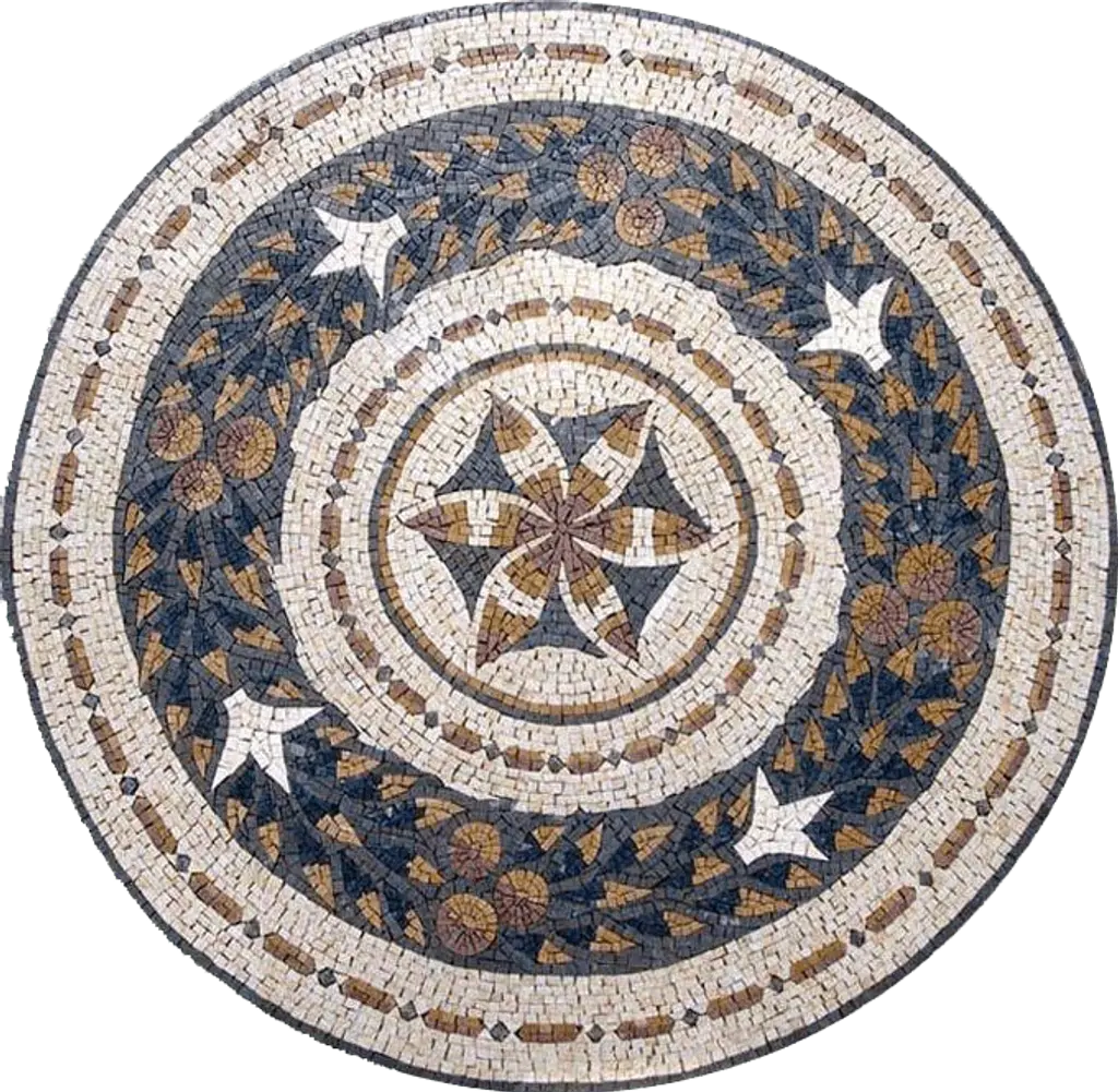 Look to the Janna flower medallion to bring a fresh look to your home or patio. The earth color palette makes a warm inviting wall accent or select a larger size to create a central focal point in a marble floor. This natural marble mosaic will enhance any corner of your home or patio. Sq.Ft. : 3.88Marble Count : 4300Backing: Your Mosaic comes on a mesh Backing Mosaic Uses: Floors, Walls both Indoor or Outdoor as well as wet placesTechnique: Handmade