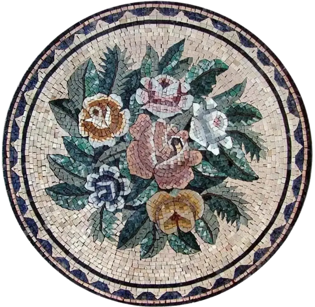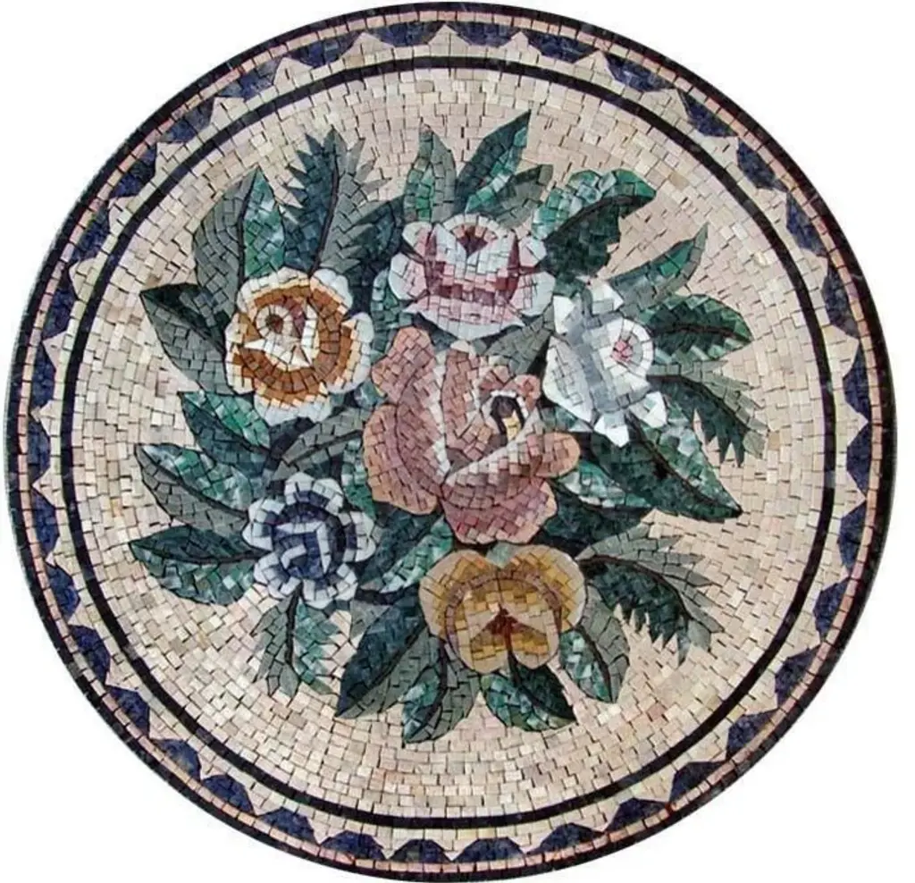Flower Medallion Mosaic - Rounded Roses | Handcrafted Luxury Stone Art - 122cm X 122cm (48" X 48")