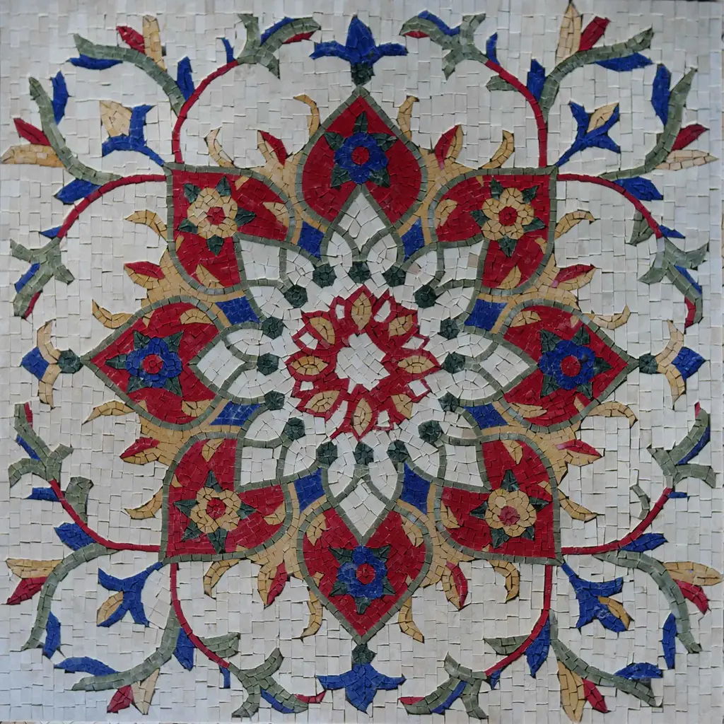 Invite color and pattern into your favorite space with the Andrea flower mosaic art square. Showcasing a flowing green red gold and ivory floral motif on a brown background this elegant hand-cut design comes in 4 standard sizes or choose a wood frame for a one-of-a-kind gift. Sq.Ft. : 3.88Marble Count : 4300Backing: Your Mosaic comes on a mesh Backing Mosaic Uses: Floors, Walls both Indoor or Outdoor as well as wet placesTechnique: Handmade
