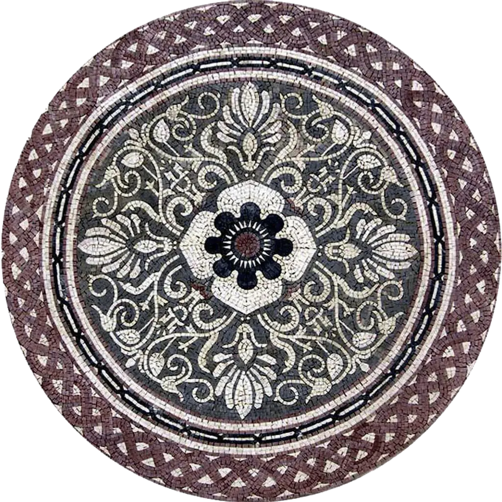 A true find the Cari Taupe flower mosaics art medallion conjures up timeless mosaic art from ancient Roman courtyards. Featuring a stylish palmette motif . It comes in 4 stock sizes or have it commissioned to suit your home improvement project.