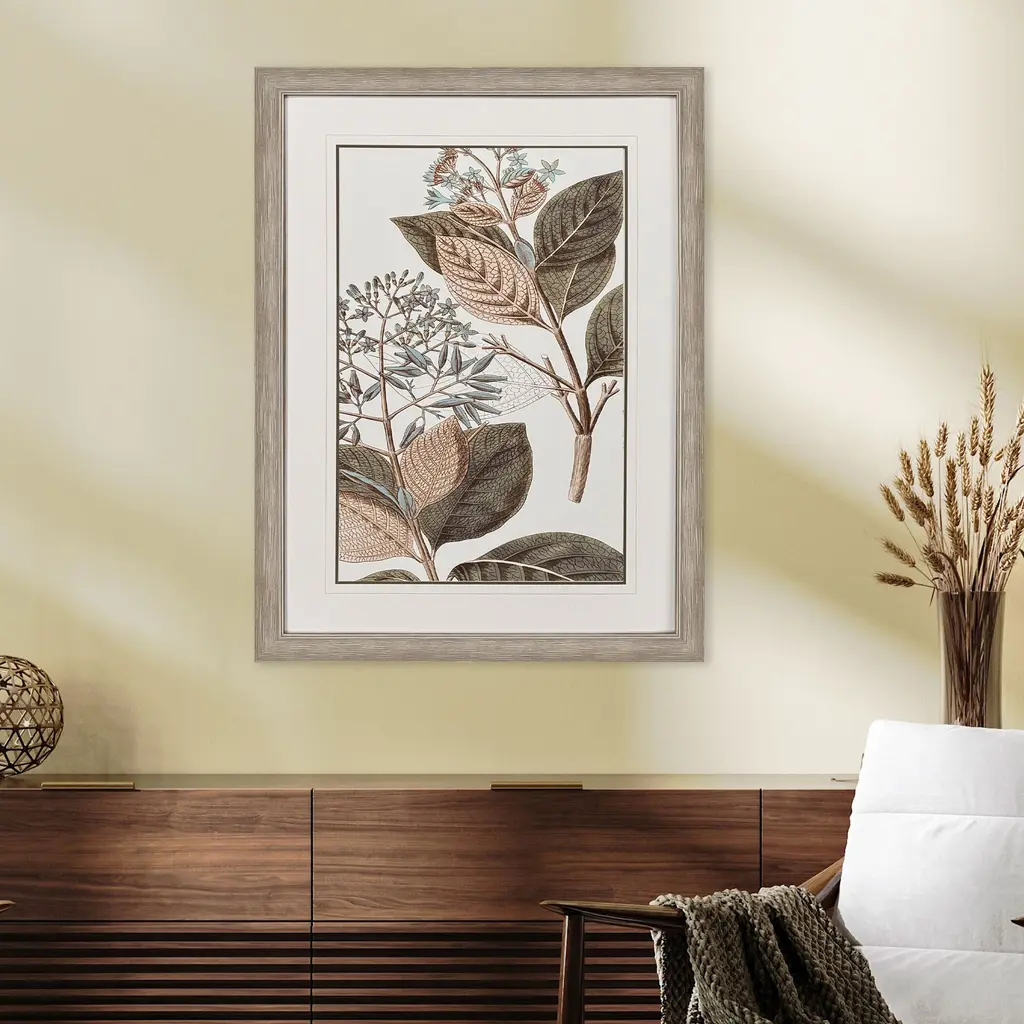 Flowering Botanical Green And Beige And Blue And Brown Framed Art