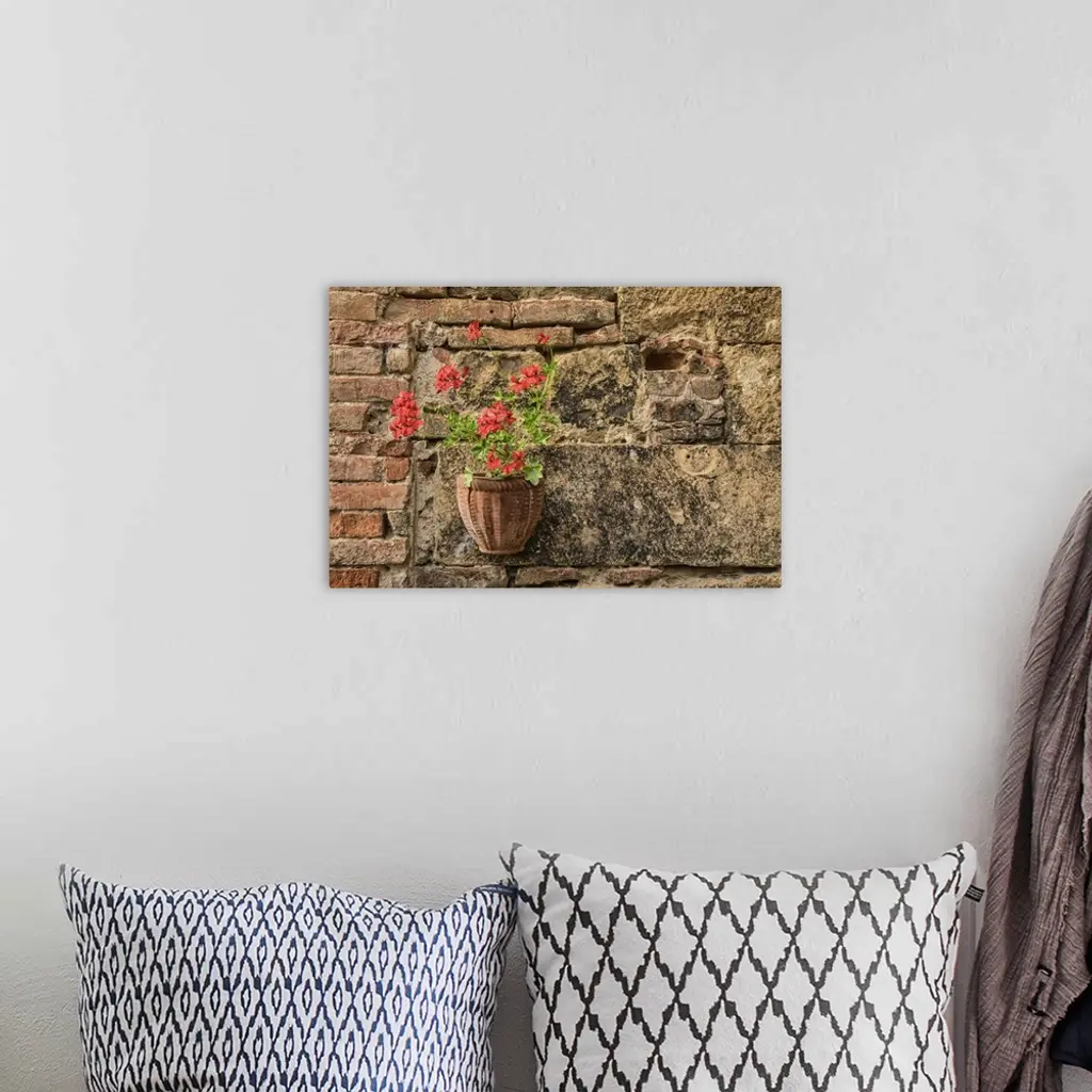 Flowers in courtyard in Monticiello, Tuscany, Italy