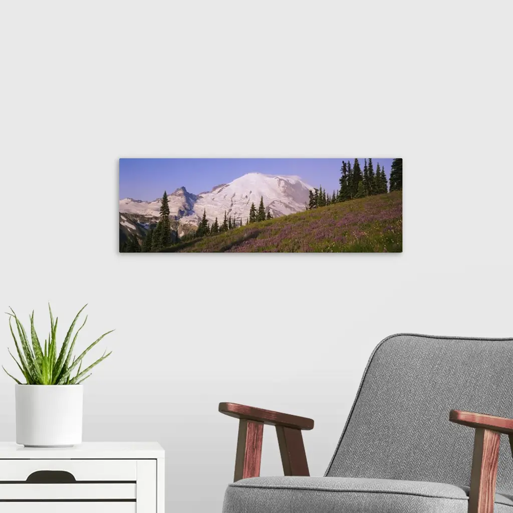 Flowers in front of mountain, Mt Rainier, Mt Rainier National Park, Washington State wall art for home and office decor. Discover canvas art prints, photos, mural, big canvas art and framed wall art in GreatBigCanvas.com's varied collections.
