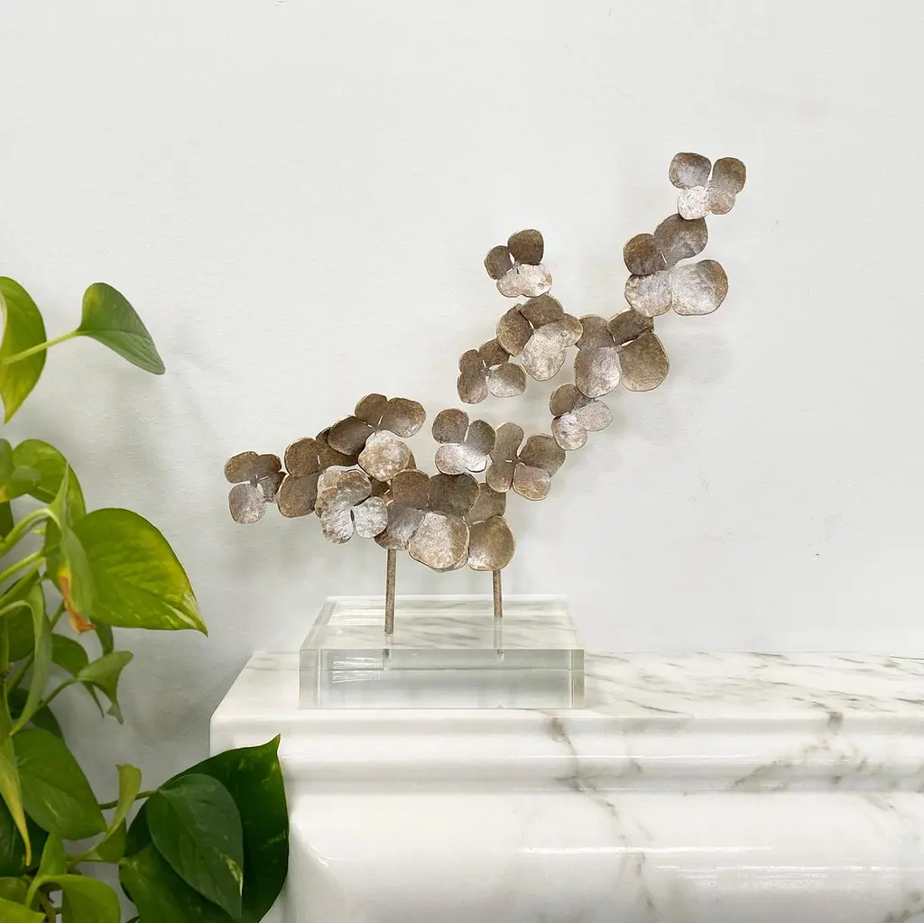 Add a touch of luxurious whimsy to your space with this exquisite accessory. With handmade, individually bent flowers mounted on an acrylic base, this object would be the perfect addition to any tabletop, desk, or bookshelf. The Flowers on Acrylic Accessory is offered in three hand-painted finishes.