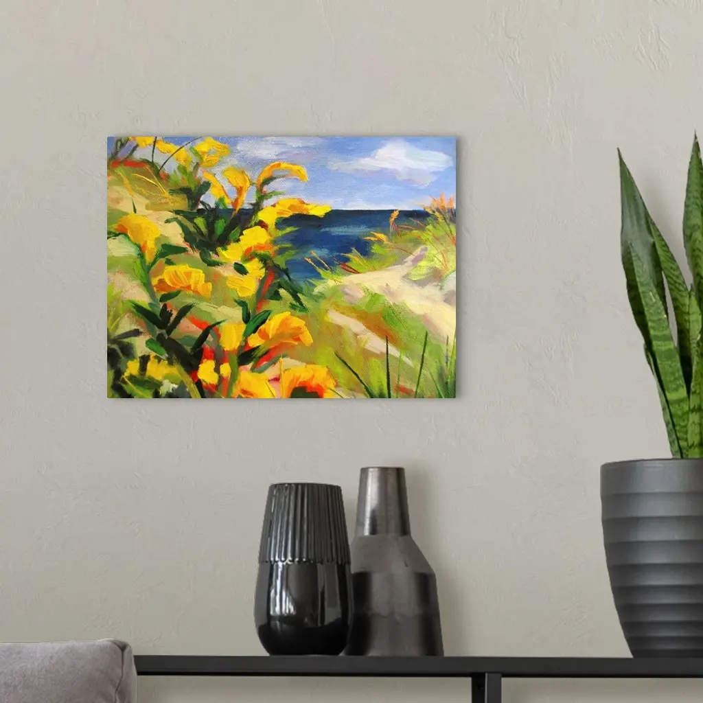 Flowers On The Beach wall art for home and office decor. Discover canvas art prints, photos, mural, big canvas art and framed wall art in GreatBigCanvas.com's varied collections.