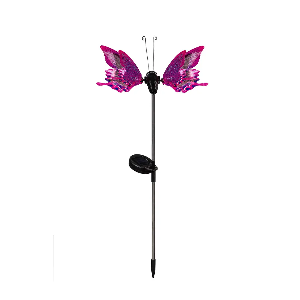 Add a charming touch to gardens, yards, or pathways with this motion activated garden stake. It features a beautiful butterfly design with vibrant wings that flutter. It’s the perfect addition to any outdoor space for an extra dose of color. Crafted of outdoor safe and weather-resistant materials, this stake is ideal for sprucing up any garden. The sturdy stake allows for easy display in damp soil. It requires one AAA Ni-MH battery, included.