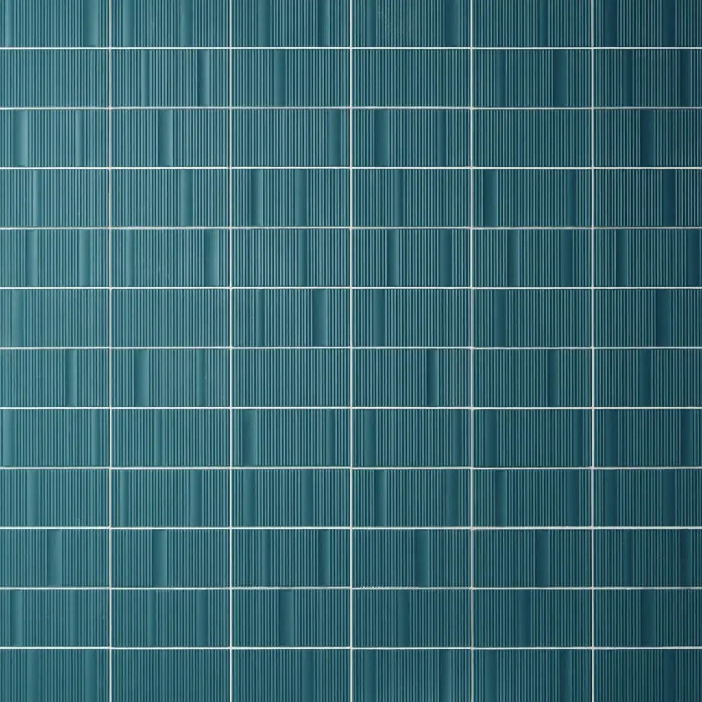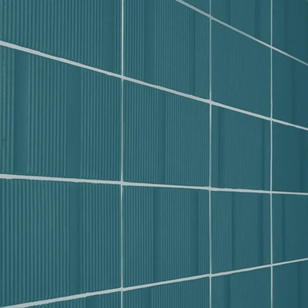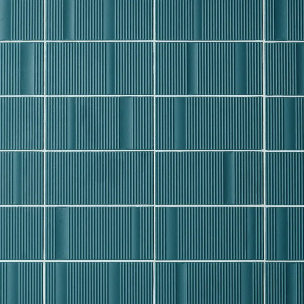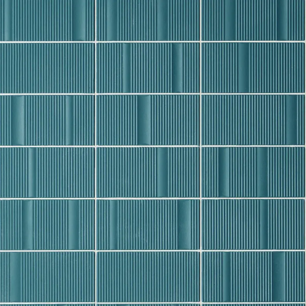 Harmonious and distinct, this collection evokes a sense of both excitement and calm. These ceramic wall tiles feature a rounded relief pattern and the appearance of 4 distinct tiles in one, forming a diverse and tactile linear composition with an architectural appeal.