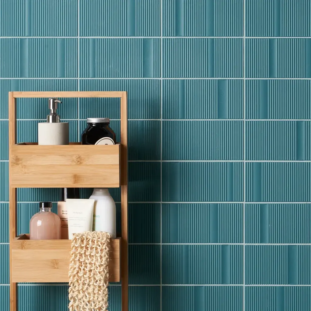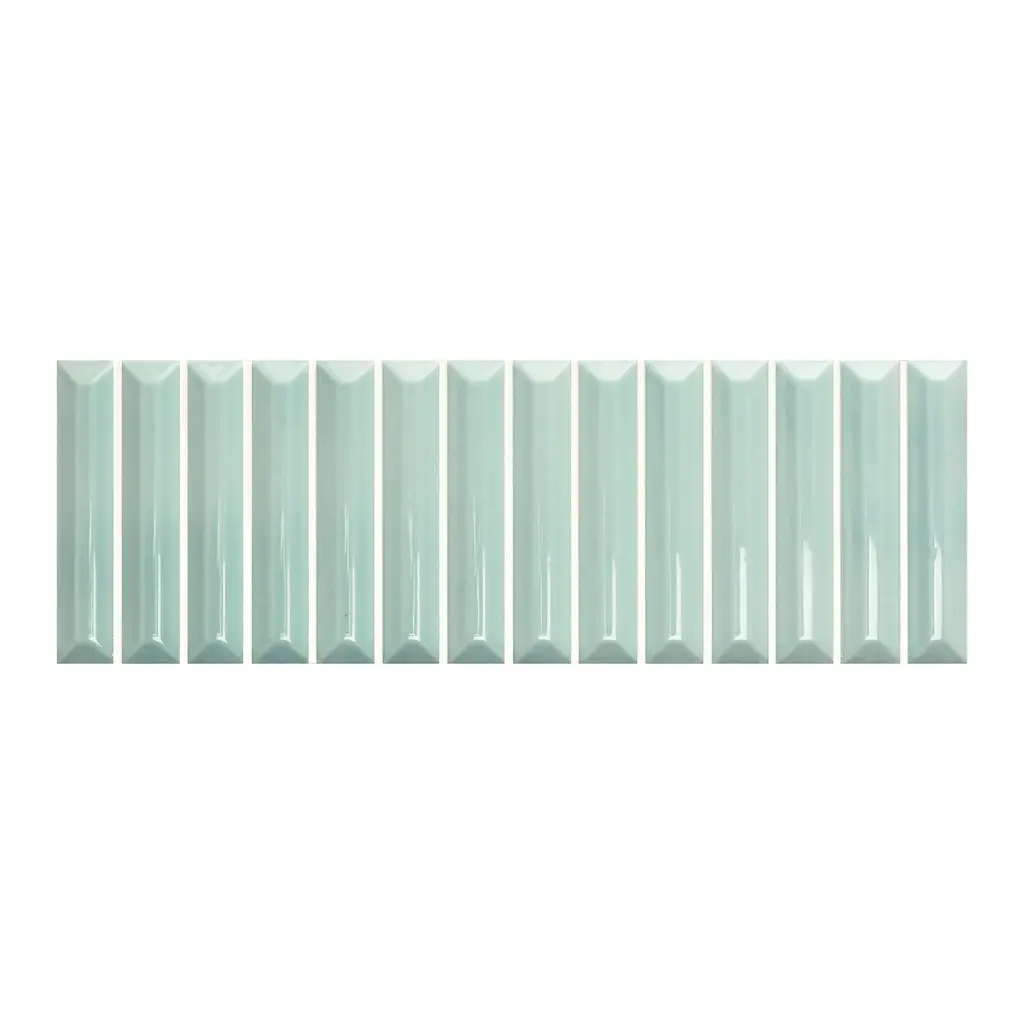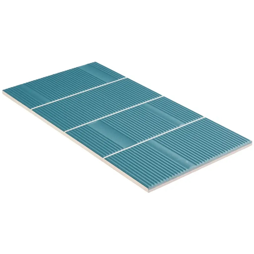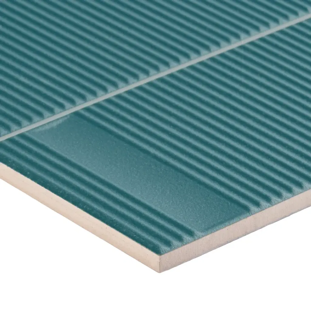 Harmonious and distinct, this collection evokes a sense of both excitement and calm. These ceramic wall tiles feature a rounded relief pattern and the appearance of 4 distinct tiles in one, forming a diverse and tactile linear composition with an architectural appeal.