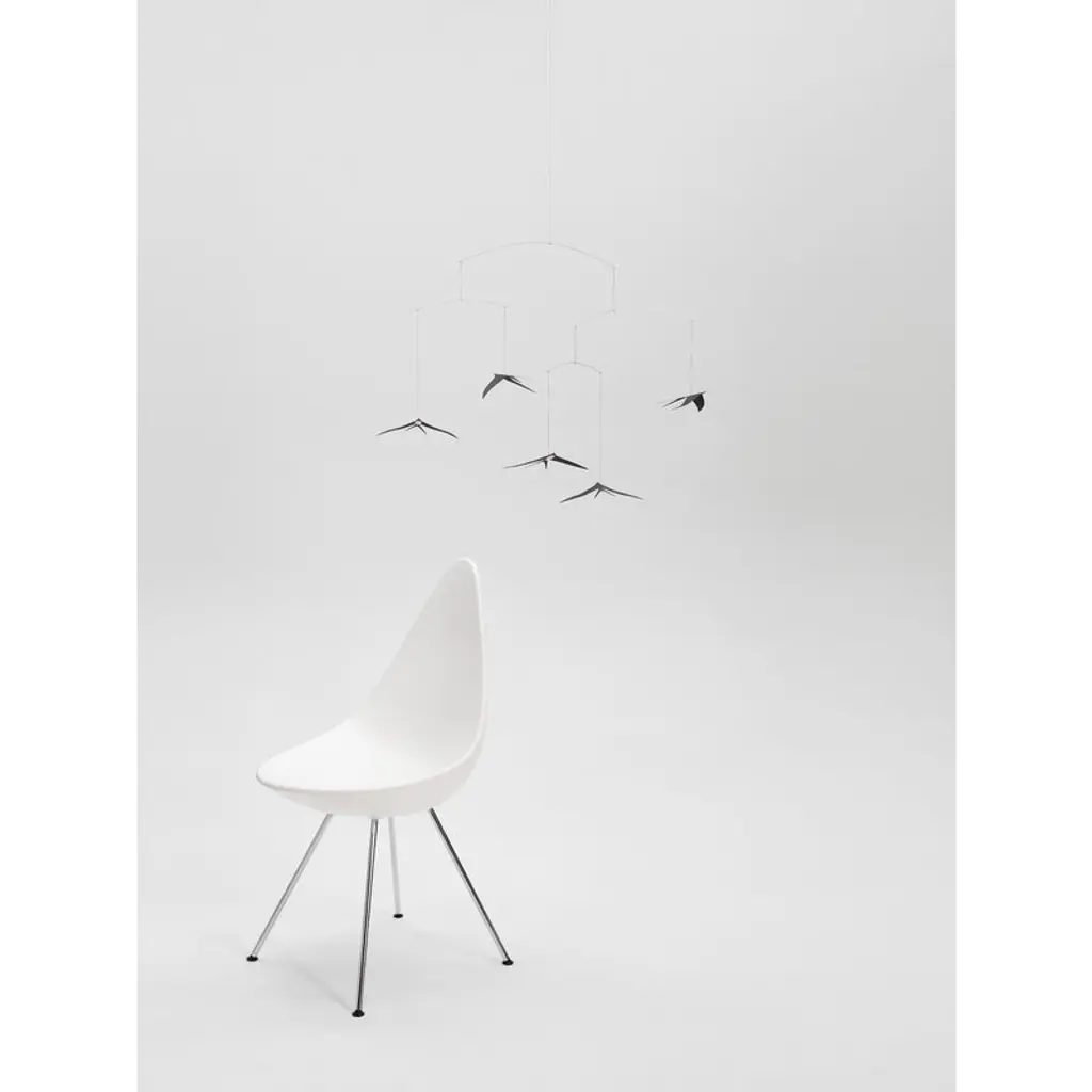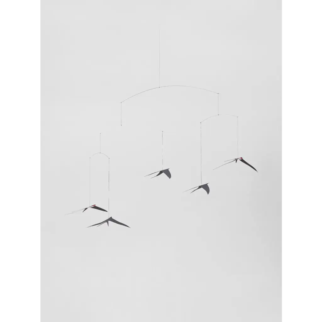 Flensted’s Flying Swallows 5 mobile is a harmonious eye-catcher for any space. The gentle flight of the swallows is especially soothing to admire in a living room or bedroom. The timelessly elegant mobile was designed by Flensted’s founder, Christian Flensted, in 1963. Handmade in Denmark, the Flensted mobiles are unique and stylish elements in home décor and public spaces. While floating in the air, the mobile catches the eye and evokes interest and creativity in both children and adults. Every Flendsted mobile is designed to constantly move with the air currents in a calm, balanced manner.