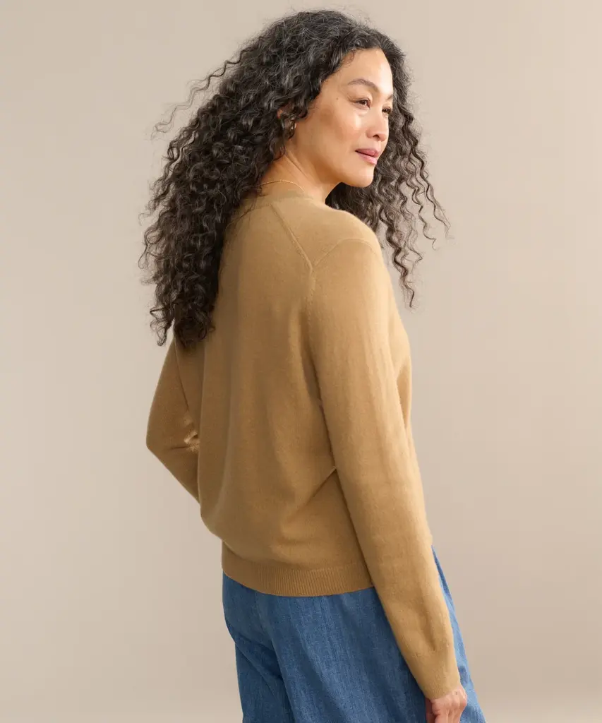 Flynn Cashmere Sweater Camel As a nod to the classics, this covetable 100% cashmere piece embraces all the ease of a relaxed fit knit with the sophistication of a v-neck silhouette. Tuck this lightweight layer into trousers or pair it with your favorite slip skirt to instantly upgrade any outfit.