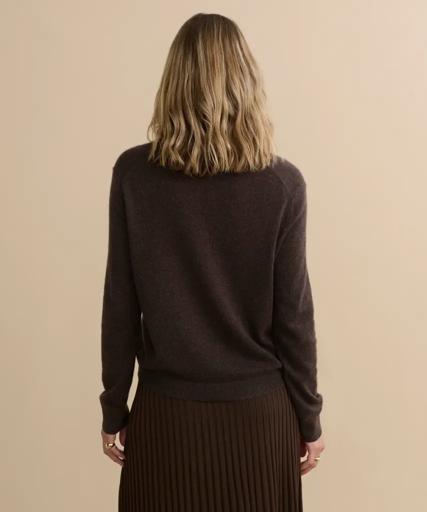 Flynn Cashmere Sweater Espresso As a nod to the classics, this covetable 100% cashmere piece embraces all the ease of a relaxed fit knit with the sophistication of a v-neck silhouette. Tuck this lightweight layer into trousers or pair it with your favorite slip skirt to instantly upgrade any outfit.