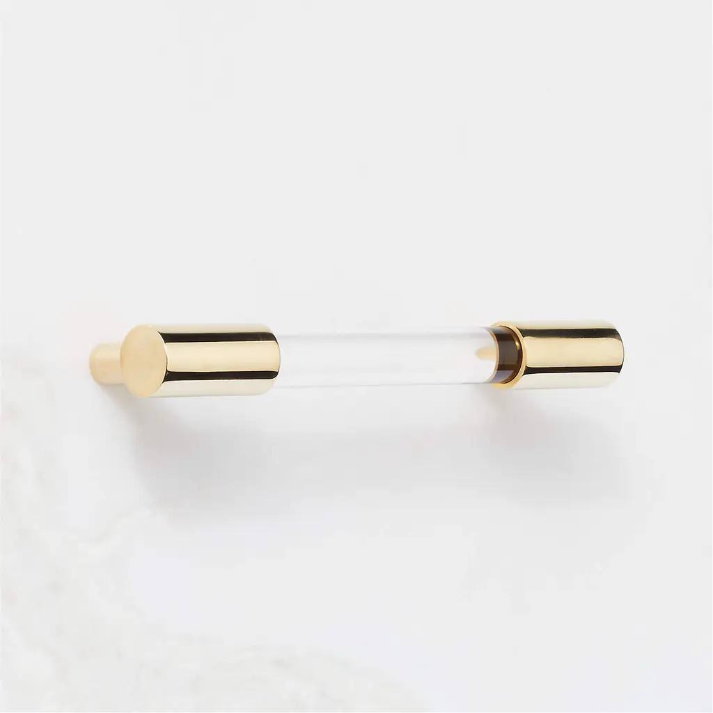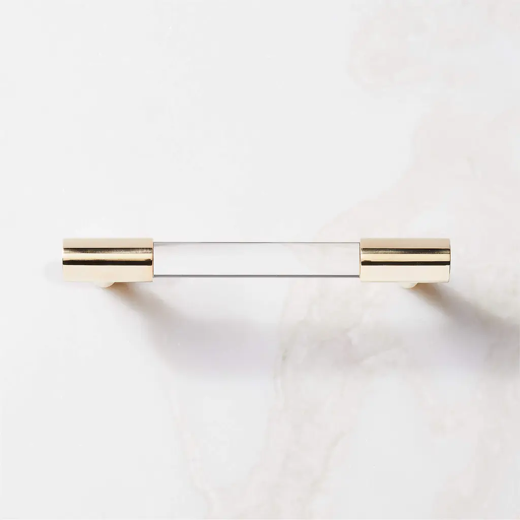 Flynn Polished Unlacquered Brass and Crystal Handle 4"