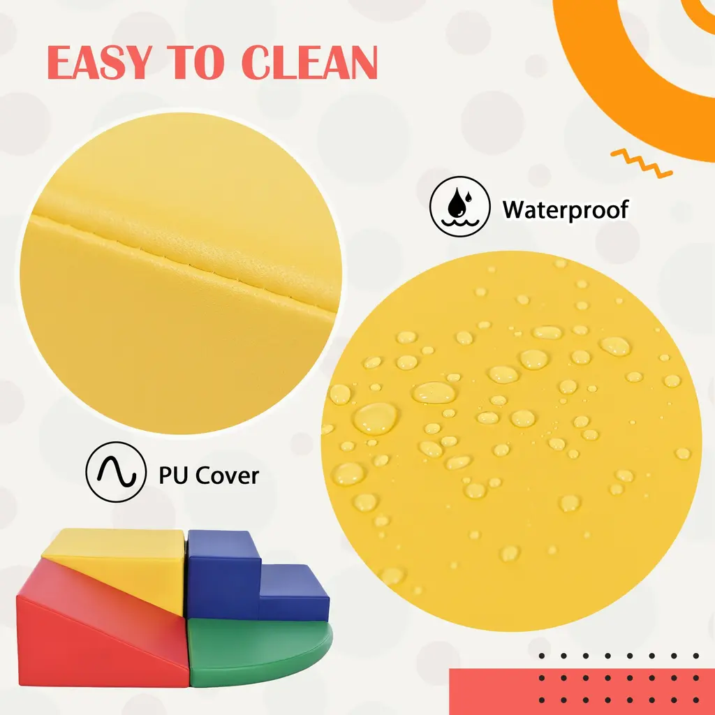 Educational Toy: The climbing toys indoor consists of 5 pieces, which can be placed at will according to the baby's preference, stimulate the baby's creativity, and cultivate the baby's ability to assemble. Toddlers can climb, crawl, and slide on this kit, learn simple motor skills, exercise body balance, and promote physical development.Soft and Safe Foam:The soft toddler climbing set is composed of high-quality EPE foam lining and a soft skin-friendly surface , Anti-slip particles on the bottom and foam with a certain support, soft and firm.Easy to Maintain:The toddler foam climbing blocks have a vinyl surface that is easy to clean and can be wiped clean with a damp cloth. The foam climbing blocks also feature a non-slip base for added stability, don't take up much space and are easy to move and store.Full Play: As an important part of the perfect indoor kids' playground, your toddler can use this climbing toy set to move, lift, carry, stack, slide, and so on, fully activating their immature bodies, and allowing children to freely release their vigorous nature.Complete Combination :This crawling playset consists of a stair, a block, a ramp, and a quarter pad for combining, with full options for play and exercise functions, children are free to rearrange and set them up the way they like and can be combined with multiple sets of soft foam toys to build their own little castles