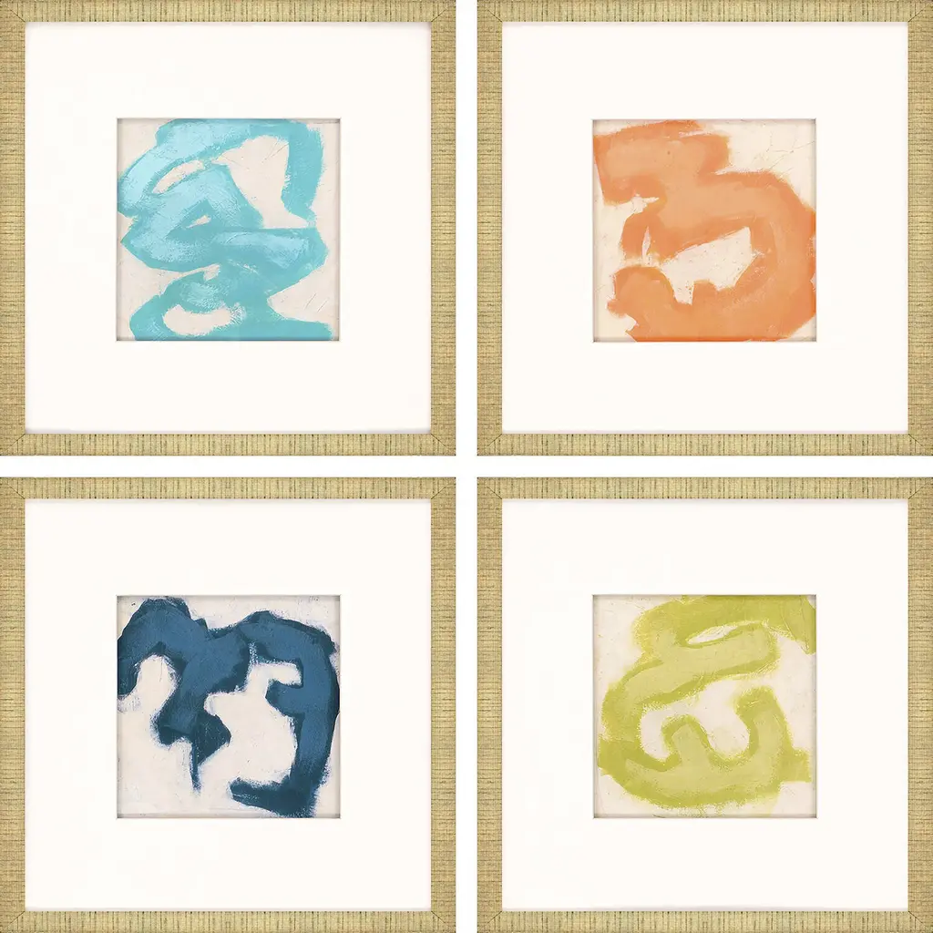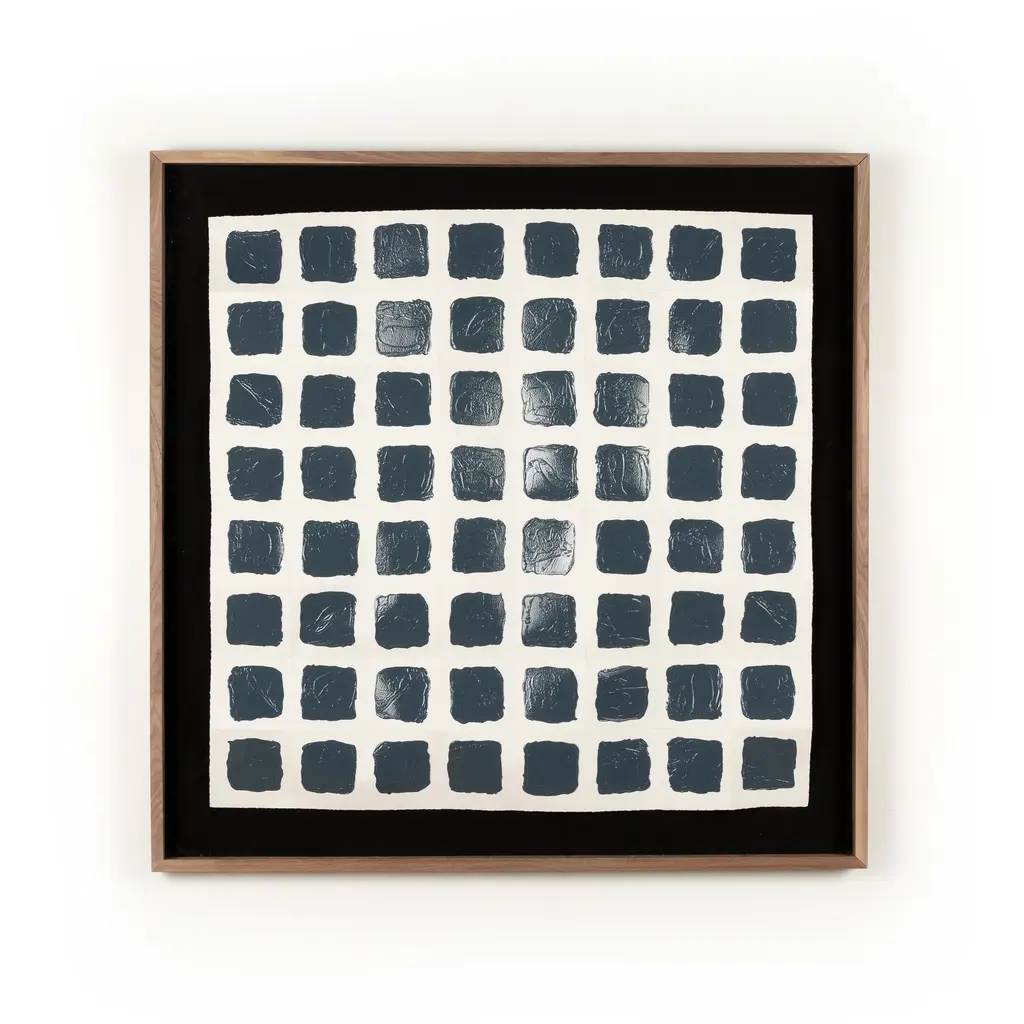 A series of vivid color blocks create a dramatic statement. Framed to the image in a rubbed matte espresso wood with honeycomb embossing.