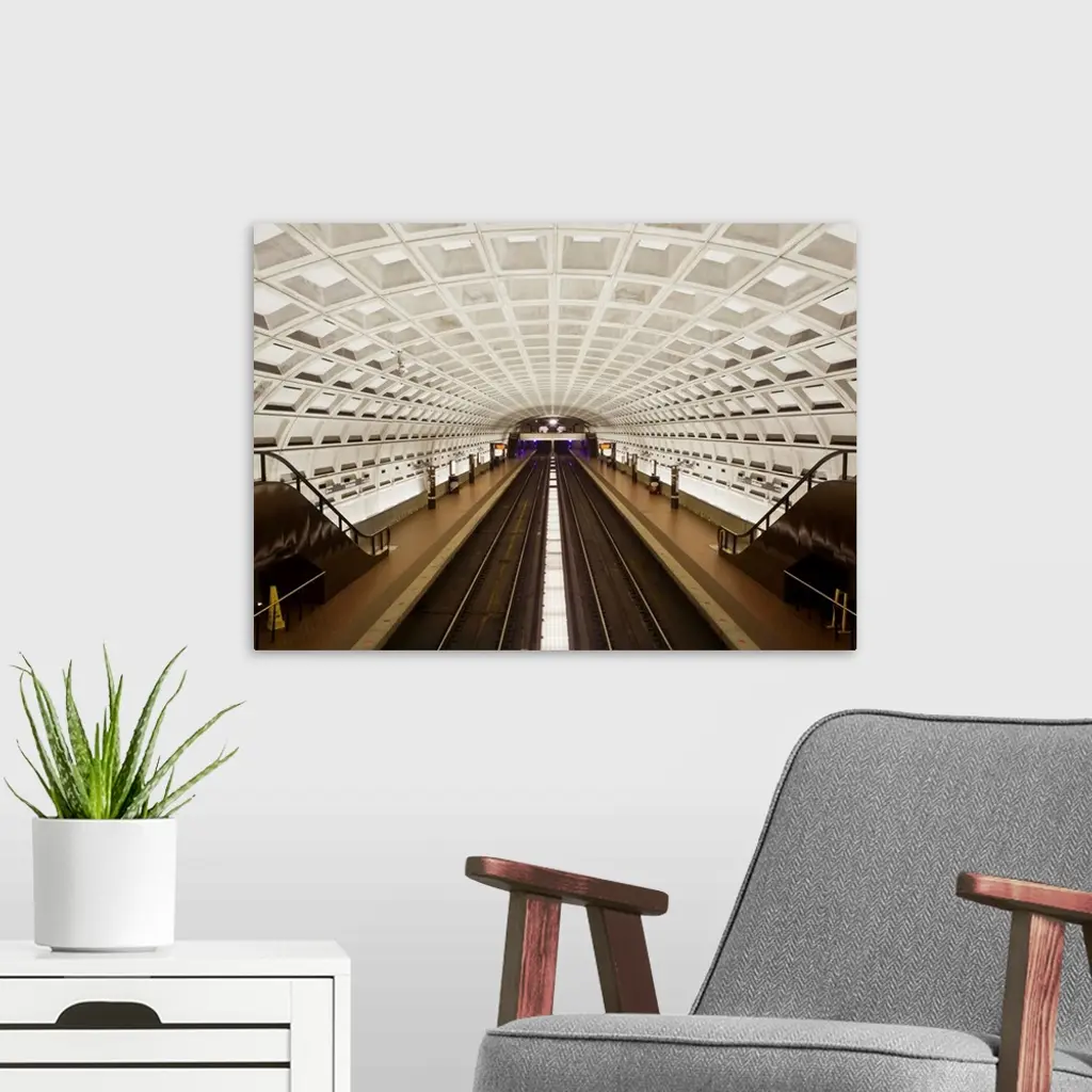 Foggy Bottom Metro station platform, Washington D.C wall art for home and office decor. Discover canvas art prints, photos, mural, big canvas art and framed wall art in GreatBigCanvas.com's varied collections.