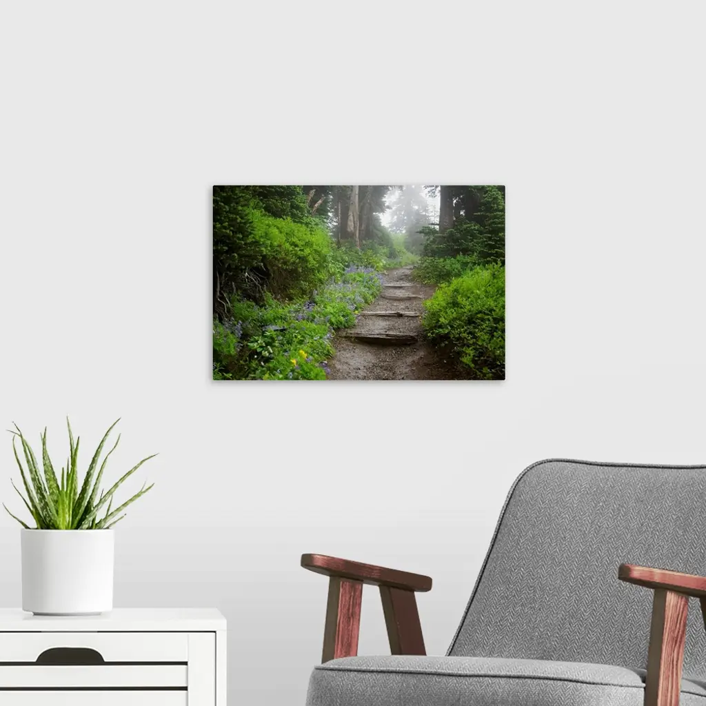 Foggy Forest Path wall art for home and office decor. Discover canvas art prints, photos, mural, big canvas art and framed wall art in GreatBigCanvas.com's varied collections.