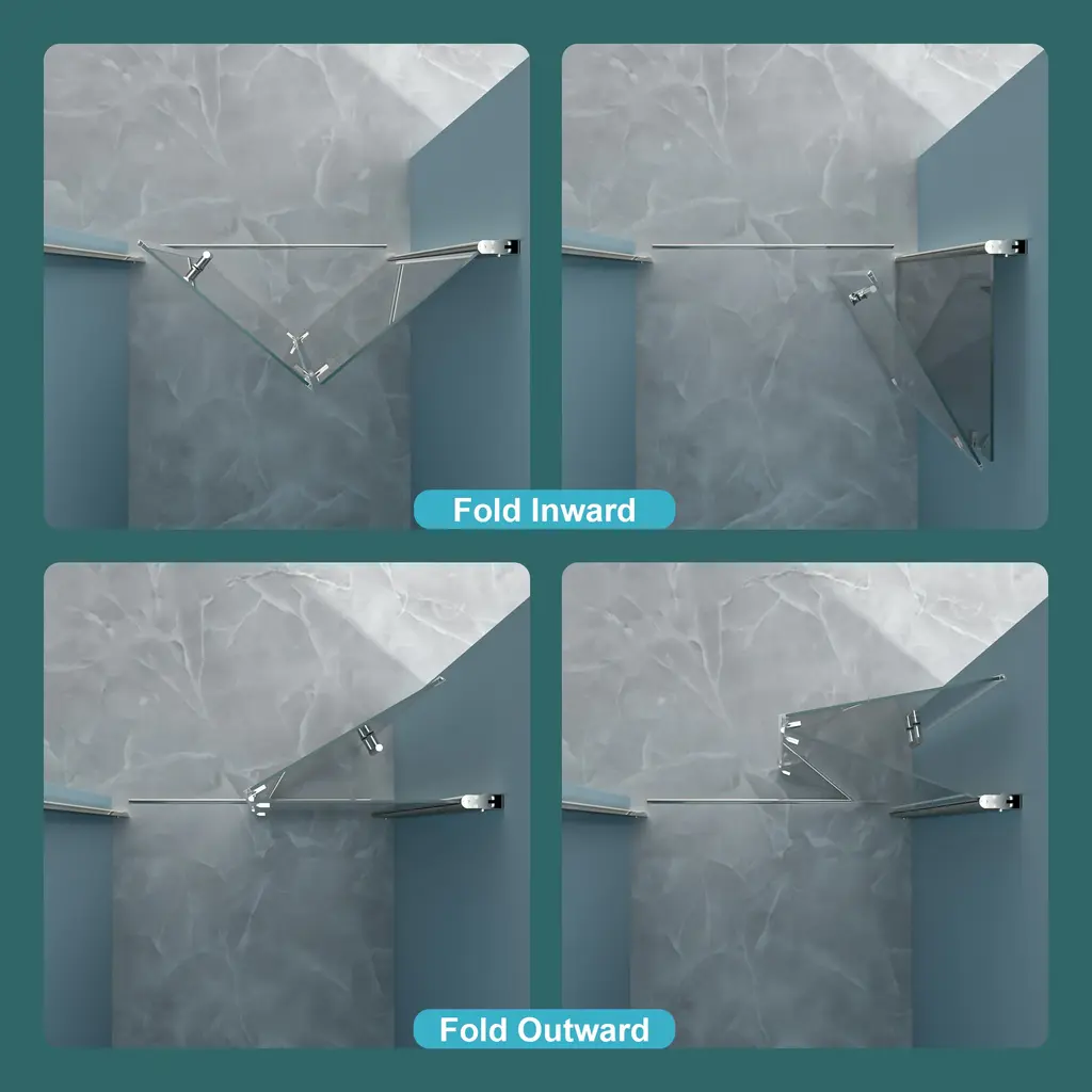 Fold Frameless Shower Door With Tempered Glass - Chrome