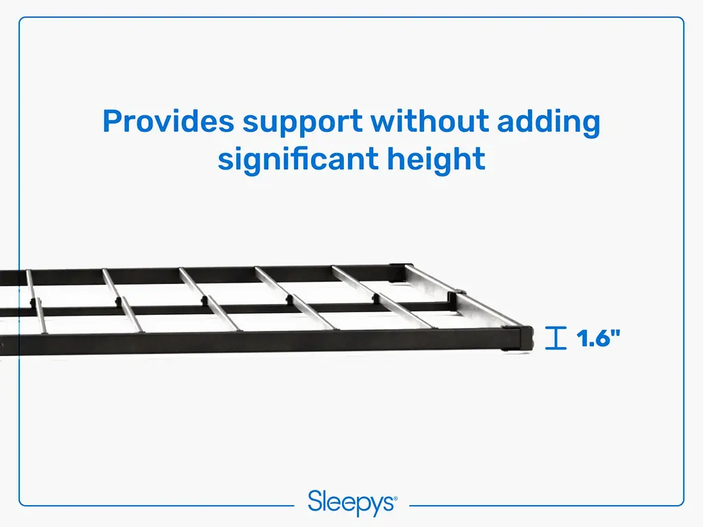 Looking for mattress support without adding significant height? This 1.6" Bunkie Board is ideal for panel, bunk or platform beds. Made with 100% durable steel, no box spring is needed. Plus, it’s foldable and easy to maneuver—all parts, tools and instructions are included for a quick assembly in under 5 minutes. 5-year limited warranty. Twin/Twin XL weight capacity 700 lbs; all other sizes support 1,400 lbs.