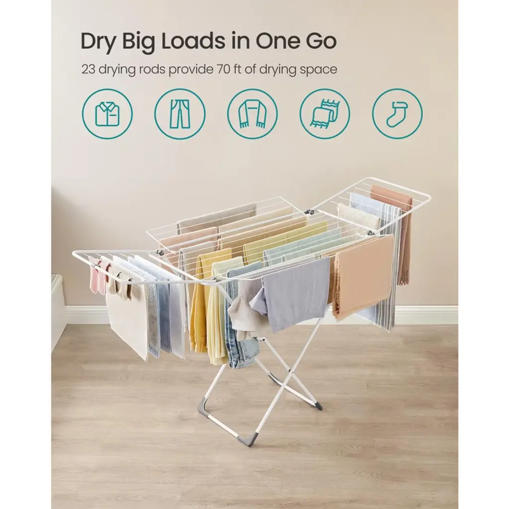 Foldable Clothes Drying Rack - 4 Gullwings With 23 Rods, Space-saving Laundry Airer For Indoor/outdoor Use, White