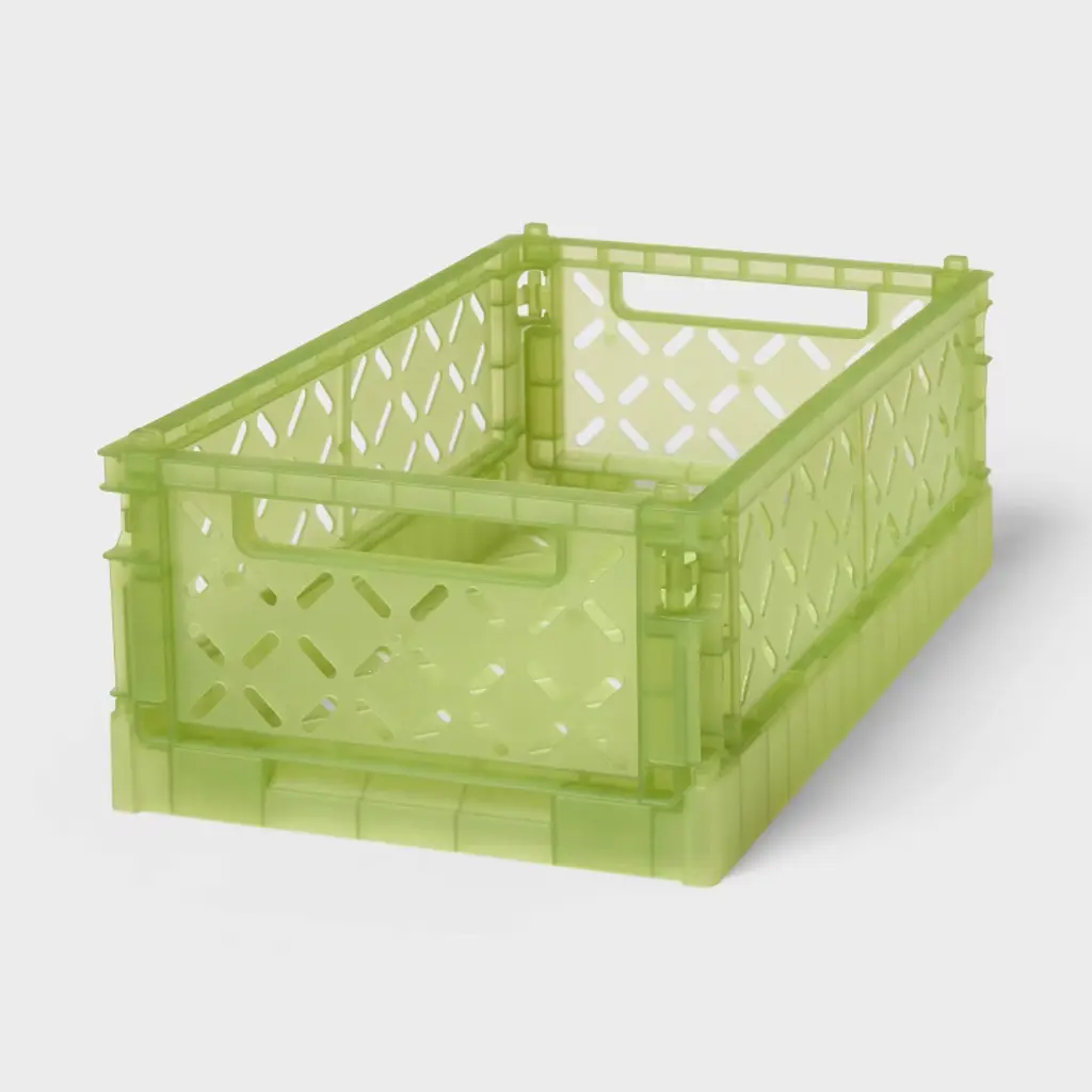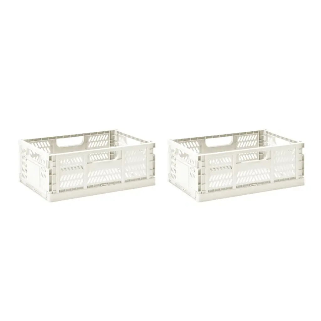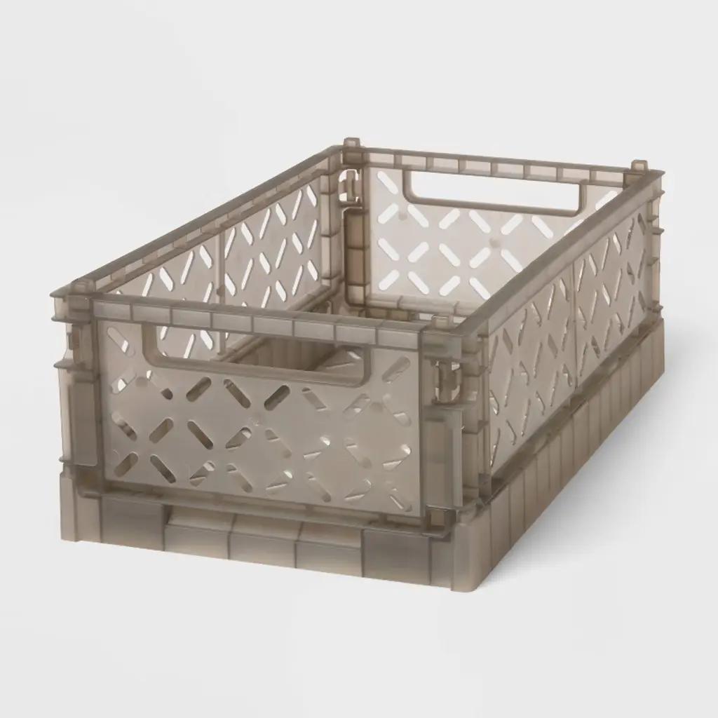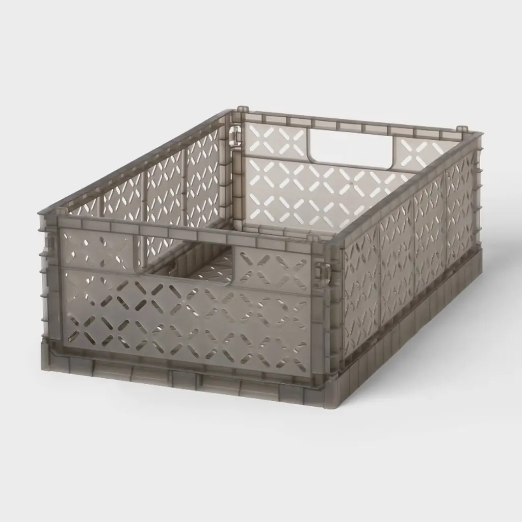 Make organizing small everyday essentials easy with the help of this Large Foldable Crate from Brightroom™. This rectangular storage crate features a stackable design to let you stack multiple same-sized crates on top of each other, and it folds flat to help save space when not in use. The open-top design provides easy access to the contents, and the cutout handles make carrying it a breeze. Adorned with an allover cut-out cross pattern for textured appeal on a white background, it's sure to integrate with different decor styles. Brightroom™: See your space in a new light.