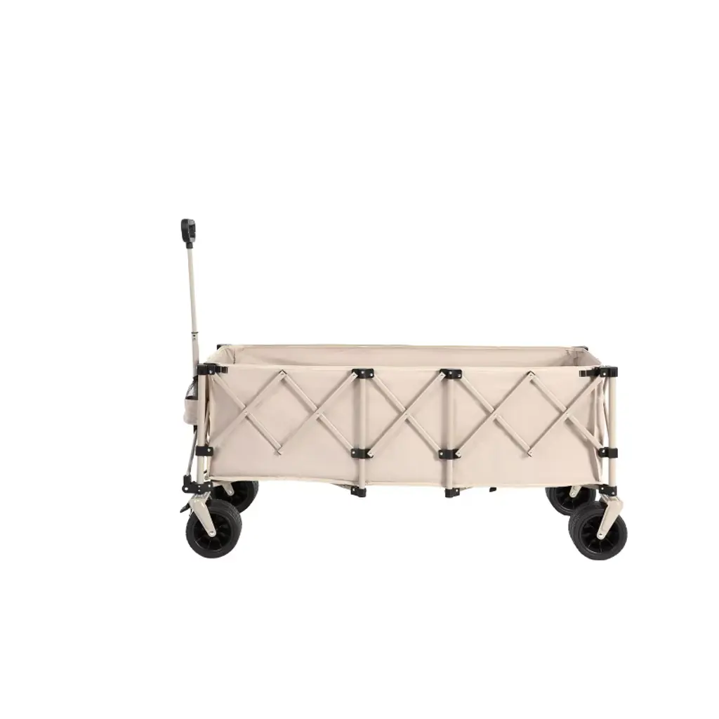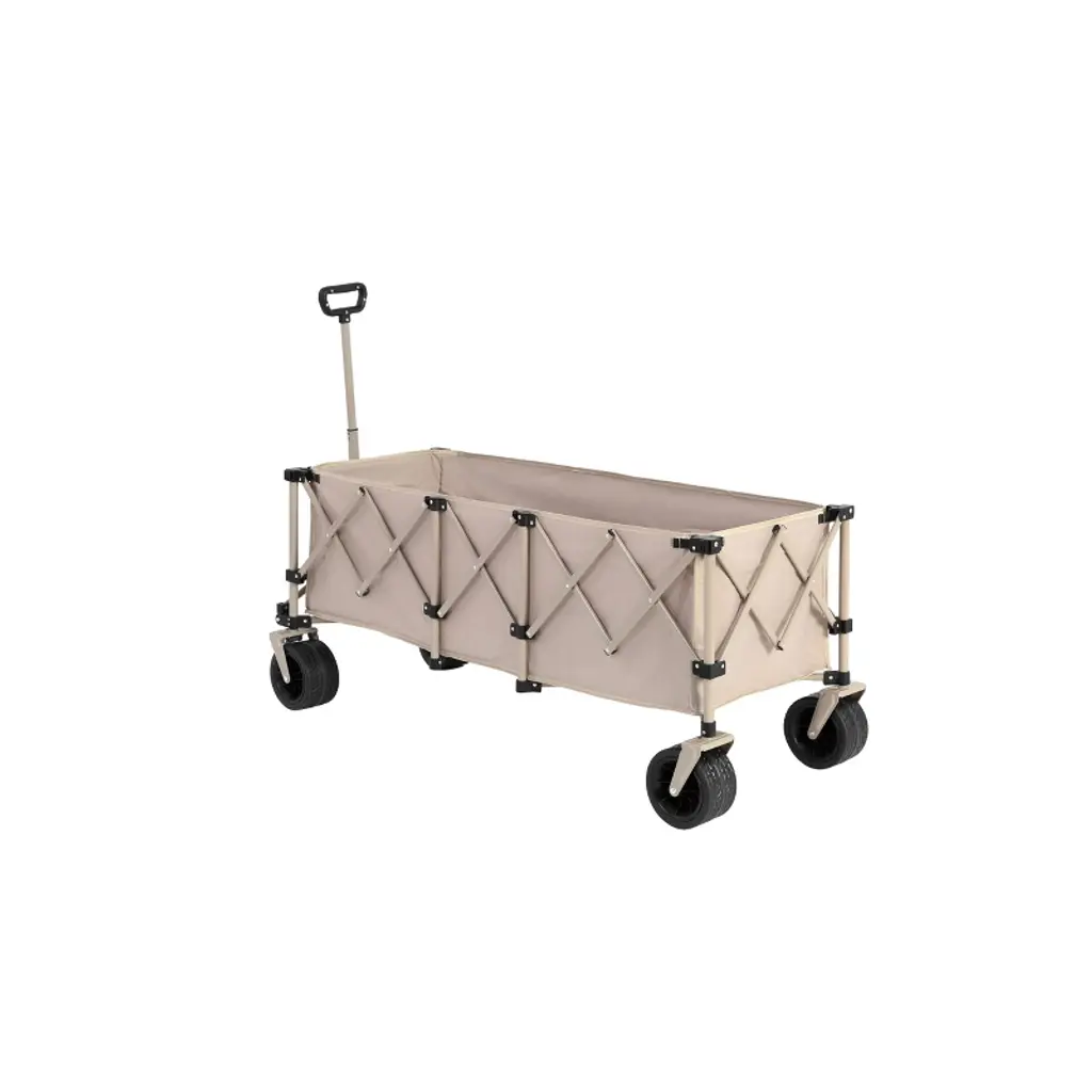 Foldable Extended Wagon With 220lbs Weight Capacity, Heavy Duty 300l Folding Utility Garden Cart Beige
