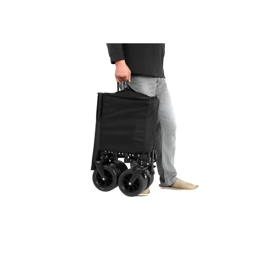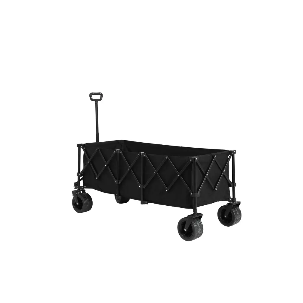 Upgraded Extra Large Capacity With a much Deeper and enlarged storage space of 53.54" L x 21.26" W x 23.62" H. The roomy internal volume and surprise loading capacity more than 3times than other wagons overall. Two mesh cup holders beverages safe and sound. Multifunction Beach wagon with big wheels for sand,perfect for hauling gear to outdoor sporting events,camping,gardening,shoppng,trips to the park and great for use around the house. Quick Setup and Folding The multifunctional collapsible cart can be quickly and easily unfolded or folded, which is very convenient for you to go to the supermarket, carry goods, or go out to play. It can save a lot of space when folded and you can place it in the corner of the trunk of your car. Automatic Rebound Handle The handle of the camping cart is designed with an automatic rebound feature, so you won't have to worry about accidentally smashing your foot or tripping over it like you would with other handles. With one-touch telescoping, you are able to adjust the height at will. Foldable Extended Wagon with 220lbs Weight Capacity-Black Color Black Product Dimensions 53.54" L x 21.26" W x 23.62" H Recommended Uses For Product Camping Shopping Sports Fishing Fabric 600D oxford fabric Weight Limit 220 Pounds Frame Material Steel Wheel 7x4' PVC Volume 300 L Carton size 1set: 24.80'' W x 15.35'' D x 10.63'' H Item Weight 29.76 Pounds Country of Origin China