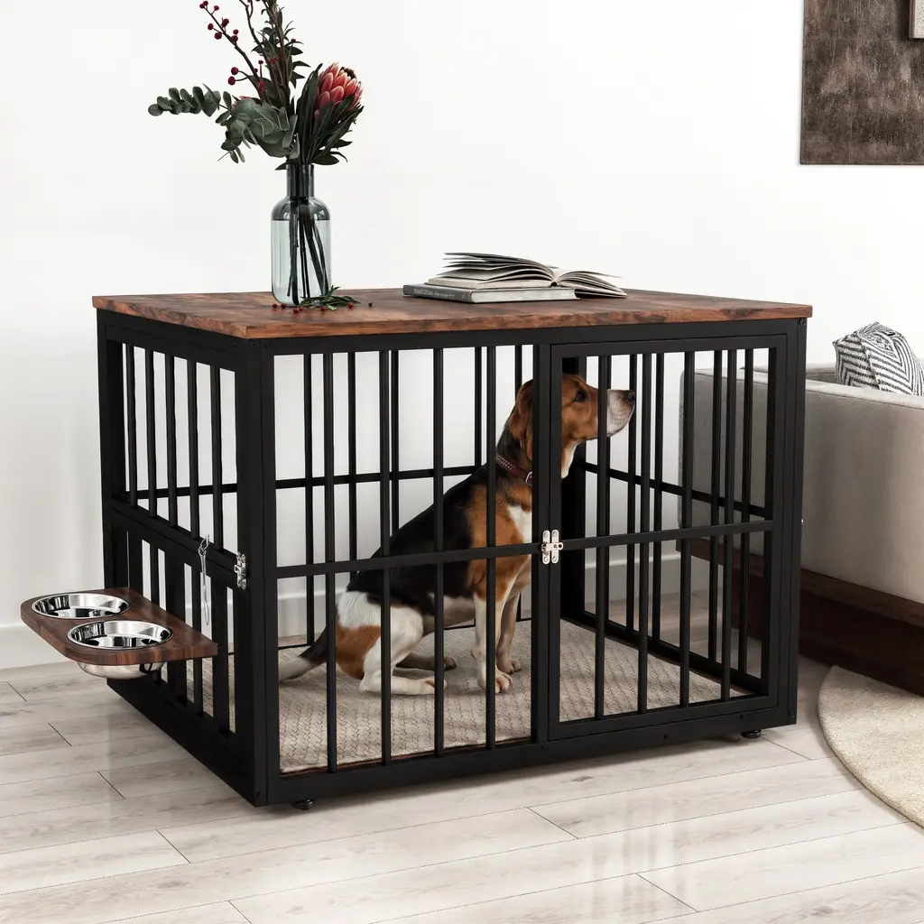 Foldable Heavy-Duty Metal Dog Cage Chew-Proof Dog Crate With Lockable Universal Wheels - 37" X 23" X 30" (L X W X H) - Black