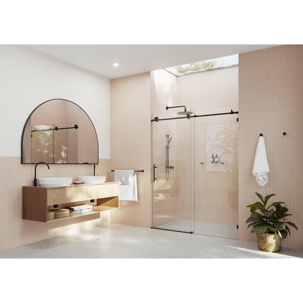 Foldable Hinged Pivot Tub Door In Matte Black With Clear Tempered Glass - Black