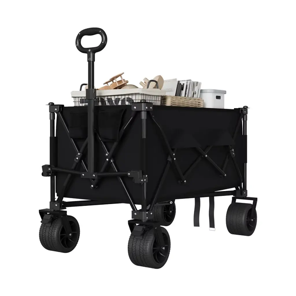 Foldable Wagon With Extended Tailgate, Waterproof Dustproof Uv Resistant Wagon Rain Covers, Heavy Duty 400lbs, Large All-terrain Beach Wheels