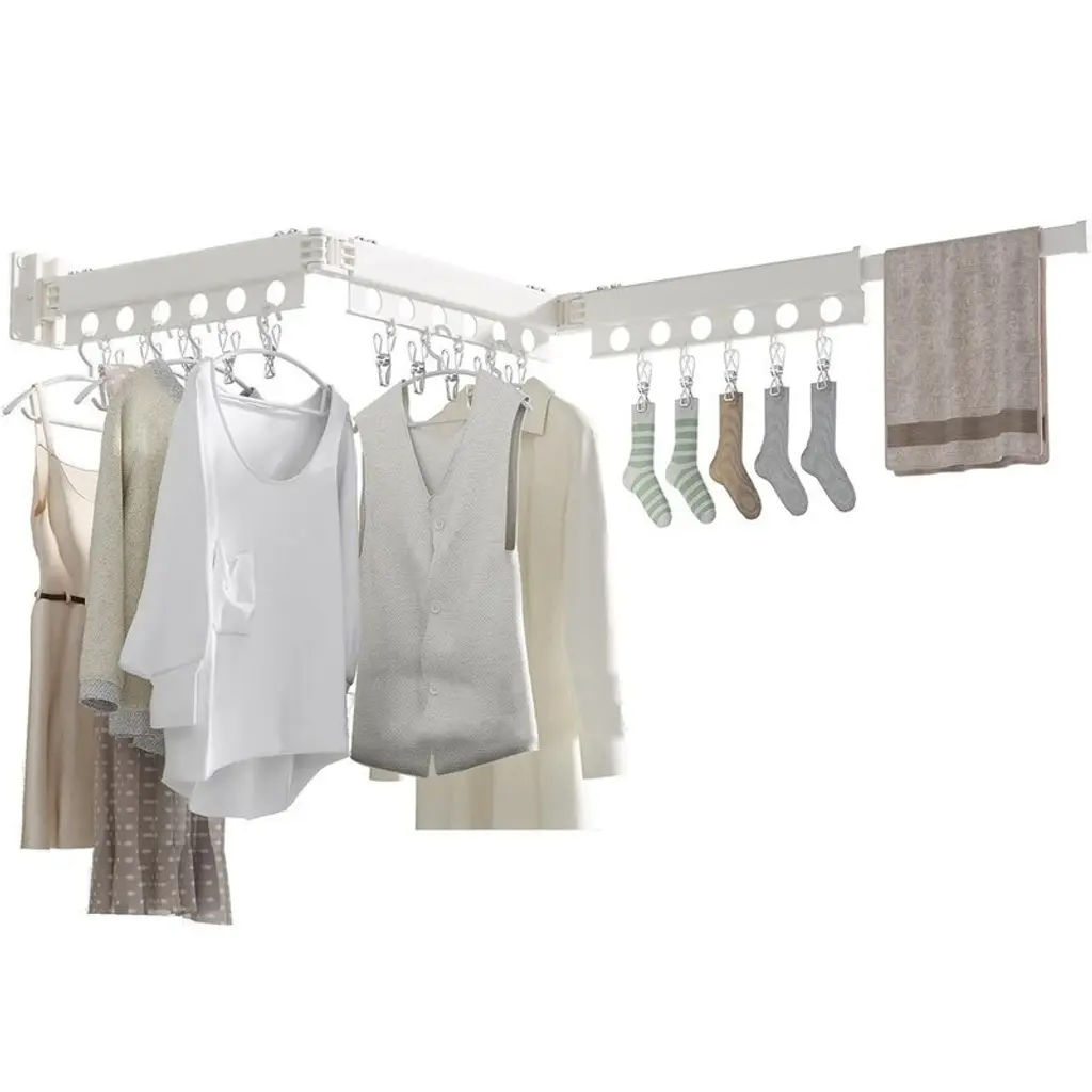 Foldable Wall Mounted Drying Rack 3 Fold - Clothes Drying Racks - White