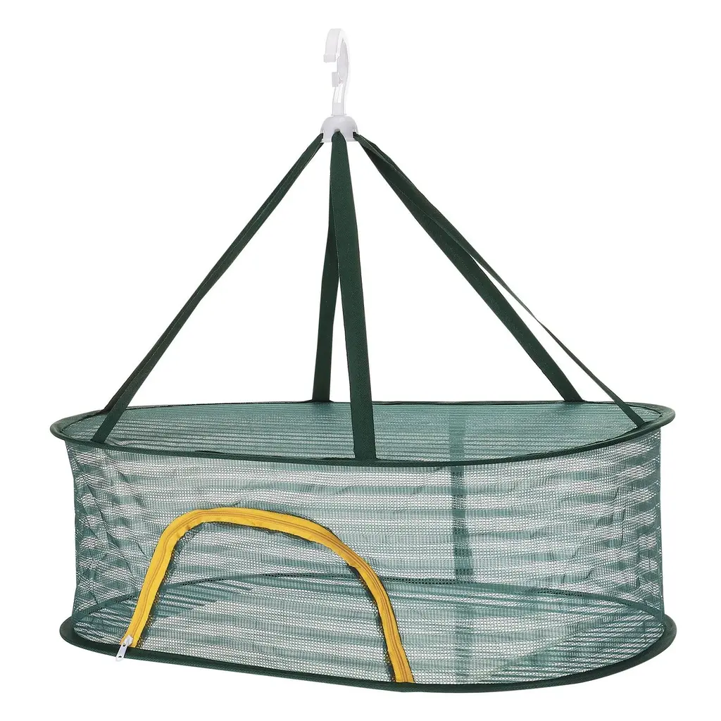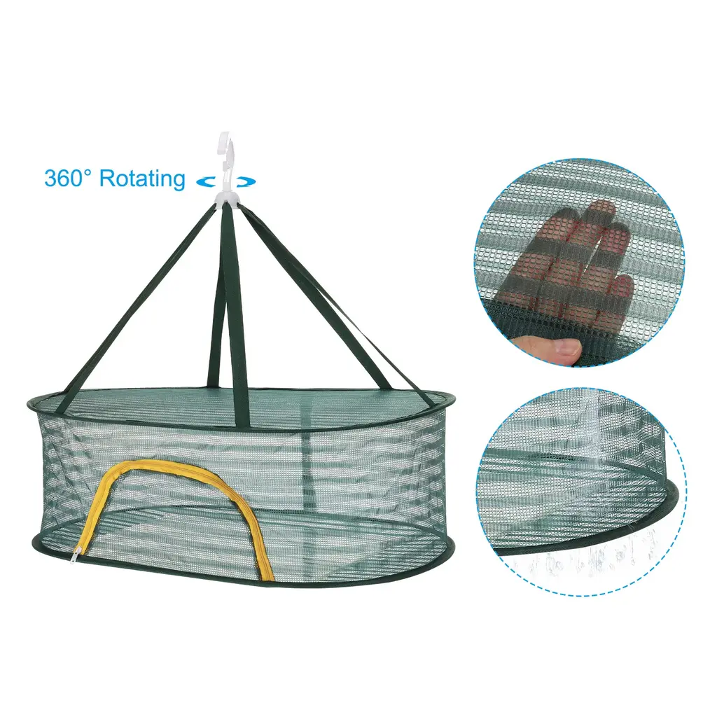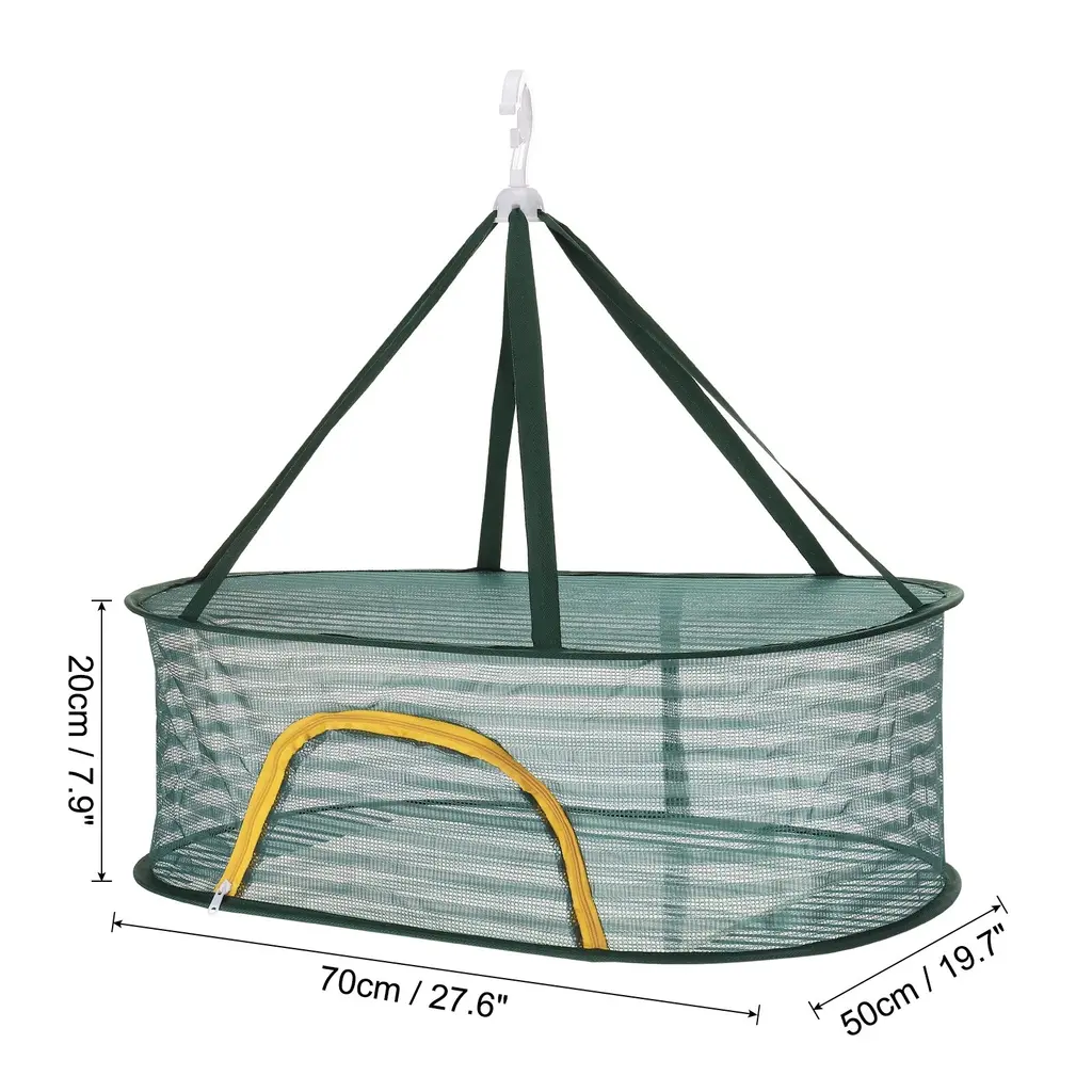 Our Folded Mesh Clothes Hanging Dryer - the perfect solution for drying your clothes efficiently and conveniently. This double tier sweater drying rack provides ample space for all your drying needs.SpecificationMaterial: Polyester, Stainless SteelDimension: 70cm x 50cm x 20cm/ 27.6 inch x 19.7 inch x 7.9 inch (L*W*H)Packing List: 1 x Folded Mesh Clothes Hanging DryerAdvantageWith its open-mesh design, this drying rack facilitates optimal airflow, allowing your clothes to dry quickly and evenly. Your clothes will be fresh and ready to wear in no time.Our durable plastic hook is designed to work seamlessly on standard shower rods, providing a reliable hanging solution. It can be easily locked in place, preventing it from blowing down due to wind.InstructionWhen not in use, this folding laundry drying rack can be easily folded and compactly stored away, saving valuable space in your home. Its lightweight and portable design also make it a great choice for those who frequently travel or have limited drying space.Note: Please note that this folded mesh clothes hanging dryer is specifically designed for drying clothes. Avoid overloading the rack with heavy items or placing pointed objects that may harm the mesh.