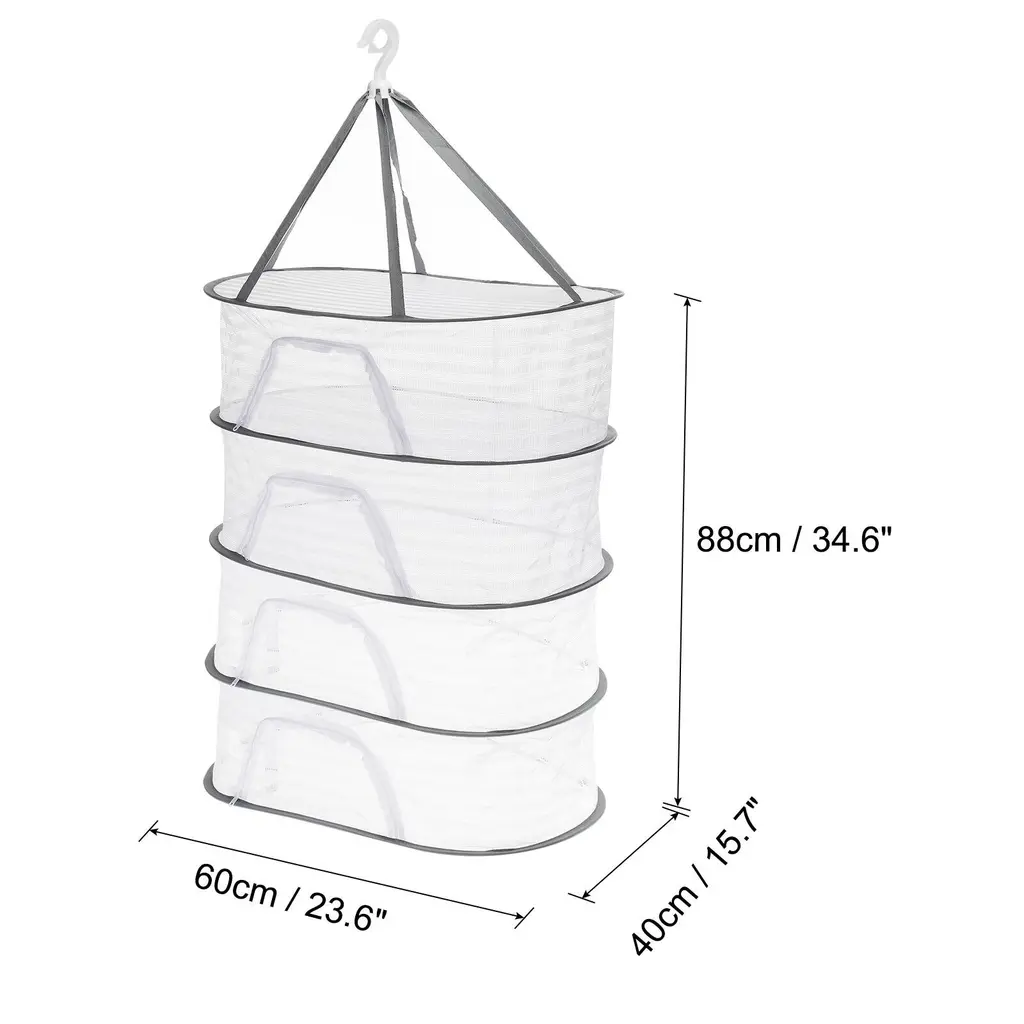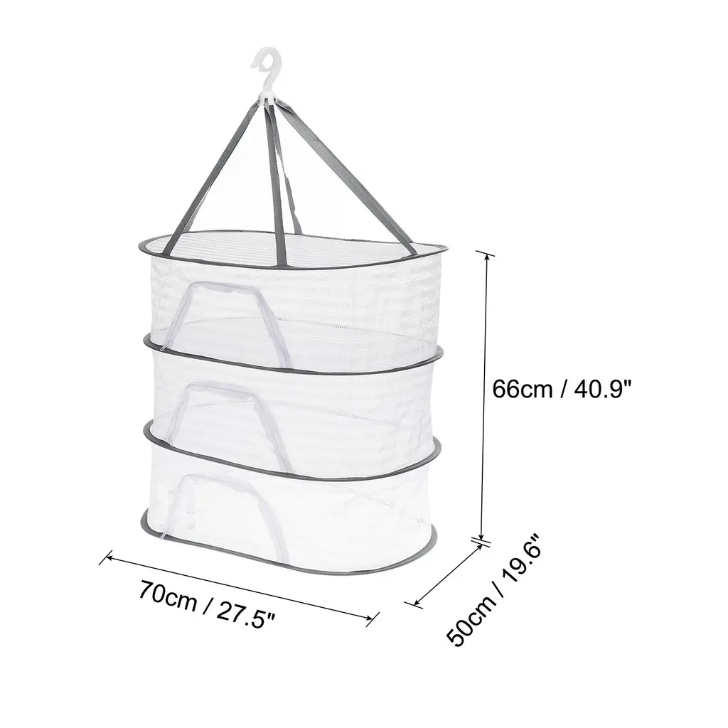 Our Folded Mesh Clothes Hanging Dryer - the perfect solution for drying your clothes efficiently and conveniently. This sweater drying rack provides ample space for all your drying needs.SpecificationMaterial: Polyester, Stainless SteelSingle-layer Height: 8.7"Open Dimension: 27.6" L x 19.7" W x 23.6" H * 1 Layer.Packing List: 1 x Clothes Drying RackAdvantageWith its open-mesh design, this drying rack facilitates optimal airflow, allowing your clothes to dry quickly and evenly. Your clothes will be fresh and ready to wear in no time.Our durable plastic hook is designed to work seamlessly on standard shower rods, providing a reliable hanging solution. It can be easily locked in place, preventing it from blowing down due to wind.InstructionWhen not in use, this folding laundry drying rack can be easily folded and compactly stored away, saving valuable space in your home. Its lightweight and portable design also makes it a great choice for those who frequently travel or have limited drying space.Note: Please note that this folded mesh clothes hanging dryer is specifically designed for drying clothes. Avoid overloading the rack with heavy items or placing pointed objects that may harm the mesh.