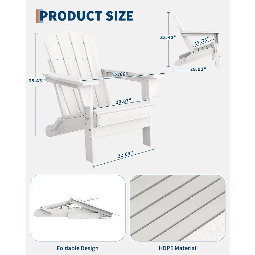 Folding Adirondack Chairs Set Of 4 With 2 Side Table,hdpe Plastic Outdoor Chairs, Wood Texture,380lbs & Weather Resistant For Fire Deck,patio,white