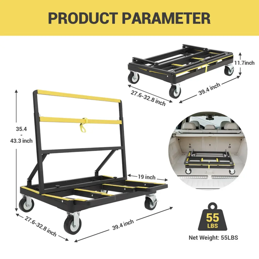 Folding Drywall Cart, Load 2200 Lbs Capacity,Panel Casters with Extended Deck,Panel Dolly Handling Sheetrock Glass and Windows Service Truck