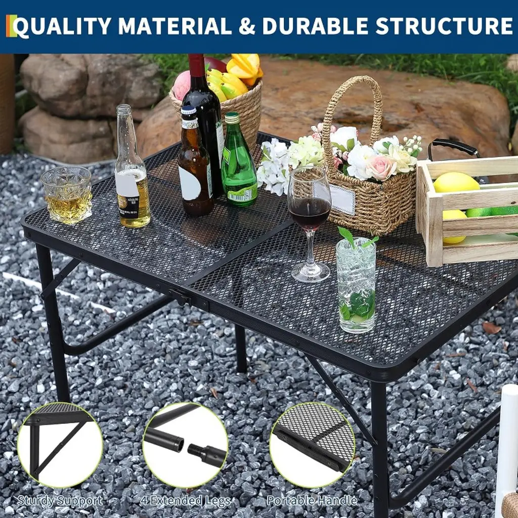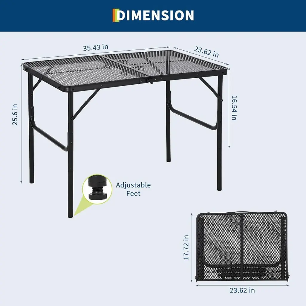 Folding Grill Table,portable Camping Table With Mesh Desktop,height Adjustable Lightweight Metal Grill Table