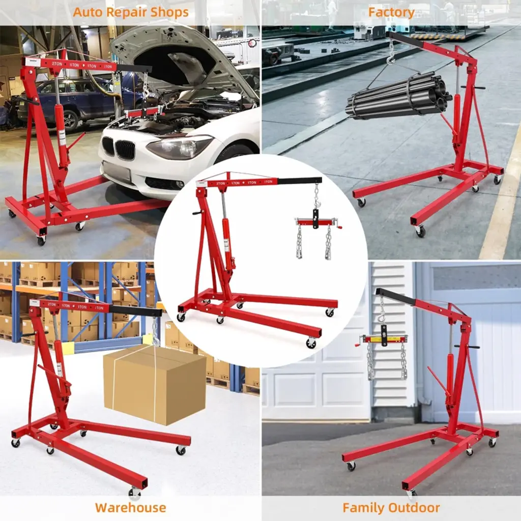 Description:Name: Hydraulic Engine Hoist with LeverFolding Engine Shop Crane Hoist Lift, Heavy Cherry Picker with 6 Wheels for Garage, WorkshopPacking list: 1 x Hydraulic Engine Hoist with Lever
