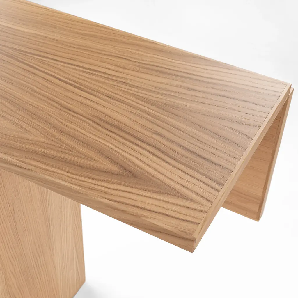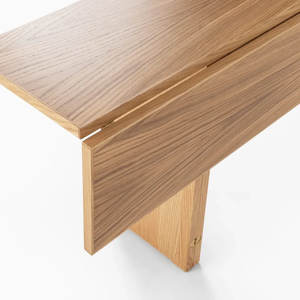 Refined expression of rigorous minimalism and clever functionality, this folding console has its essential design counterbalanced by intriguing woodgrain. A solid oak edge enriches the structure, which boasts a striking oak veneer sure to capture the eye with its singular traceries. The length can be customized from 190 to 228 cm at no additional cost, please contact the Concierge for customization inquiries.
