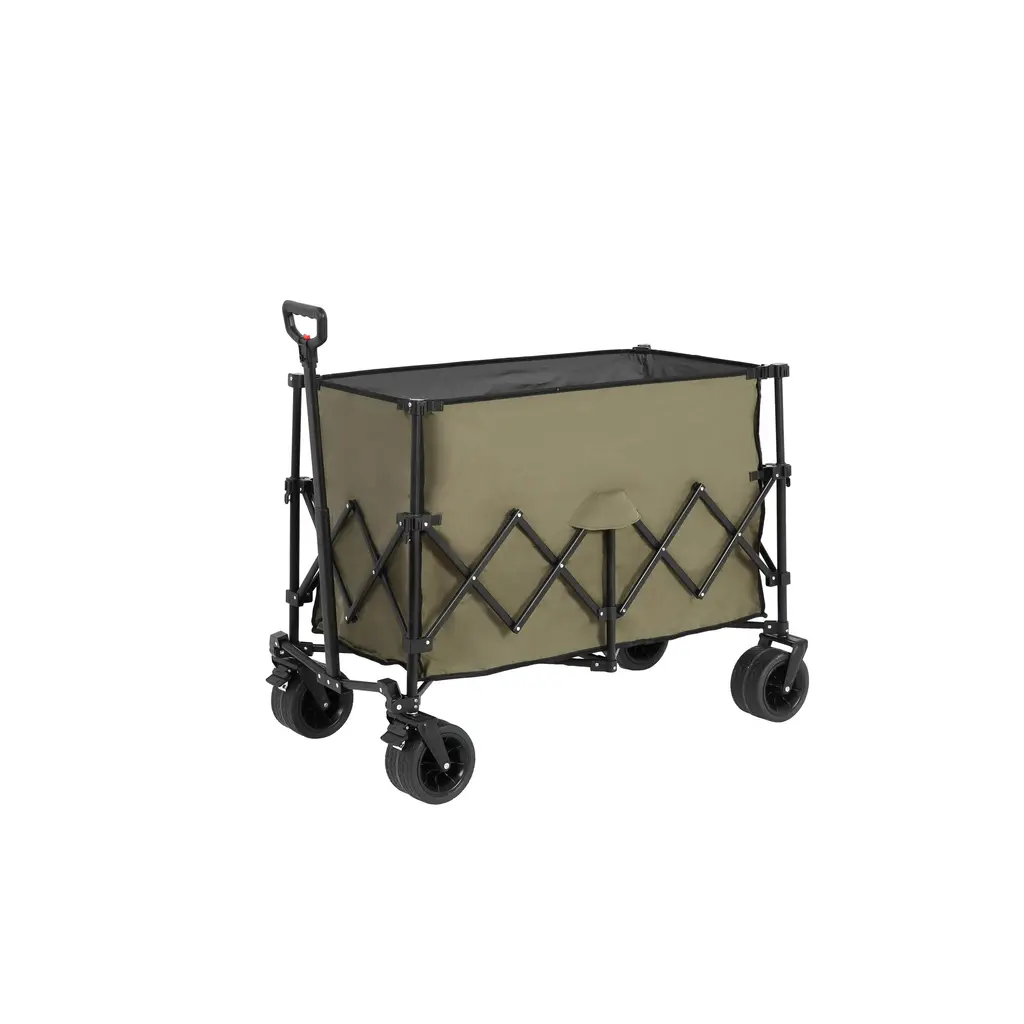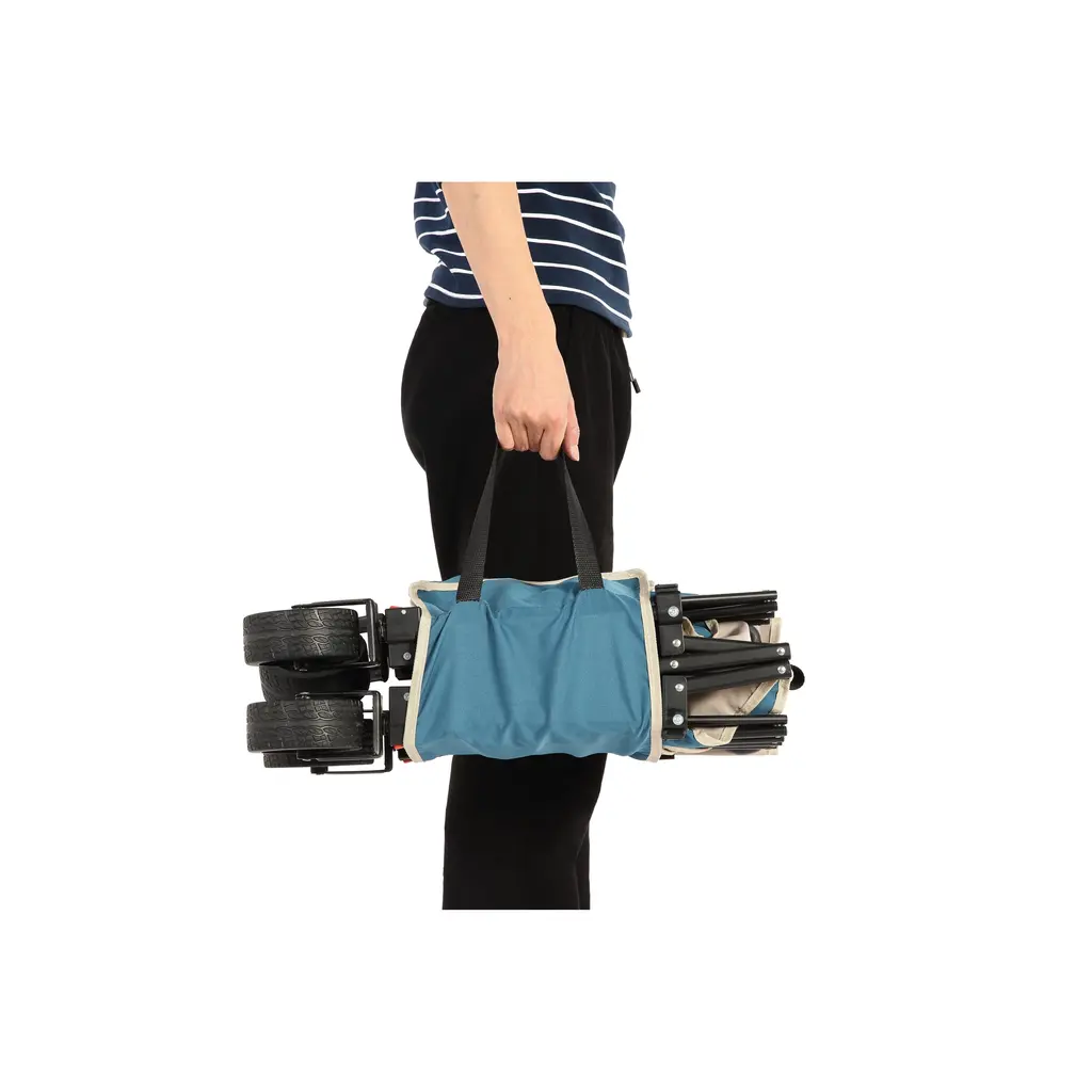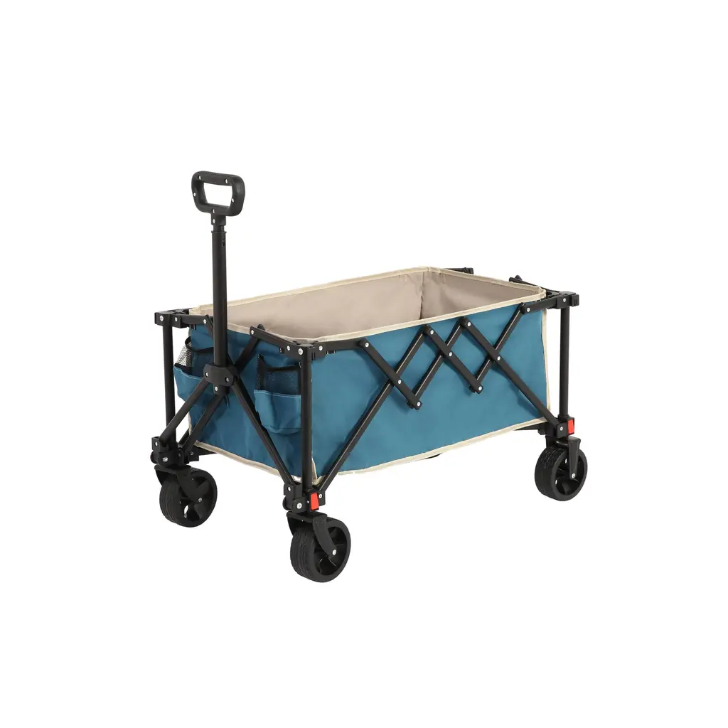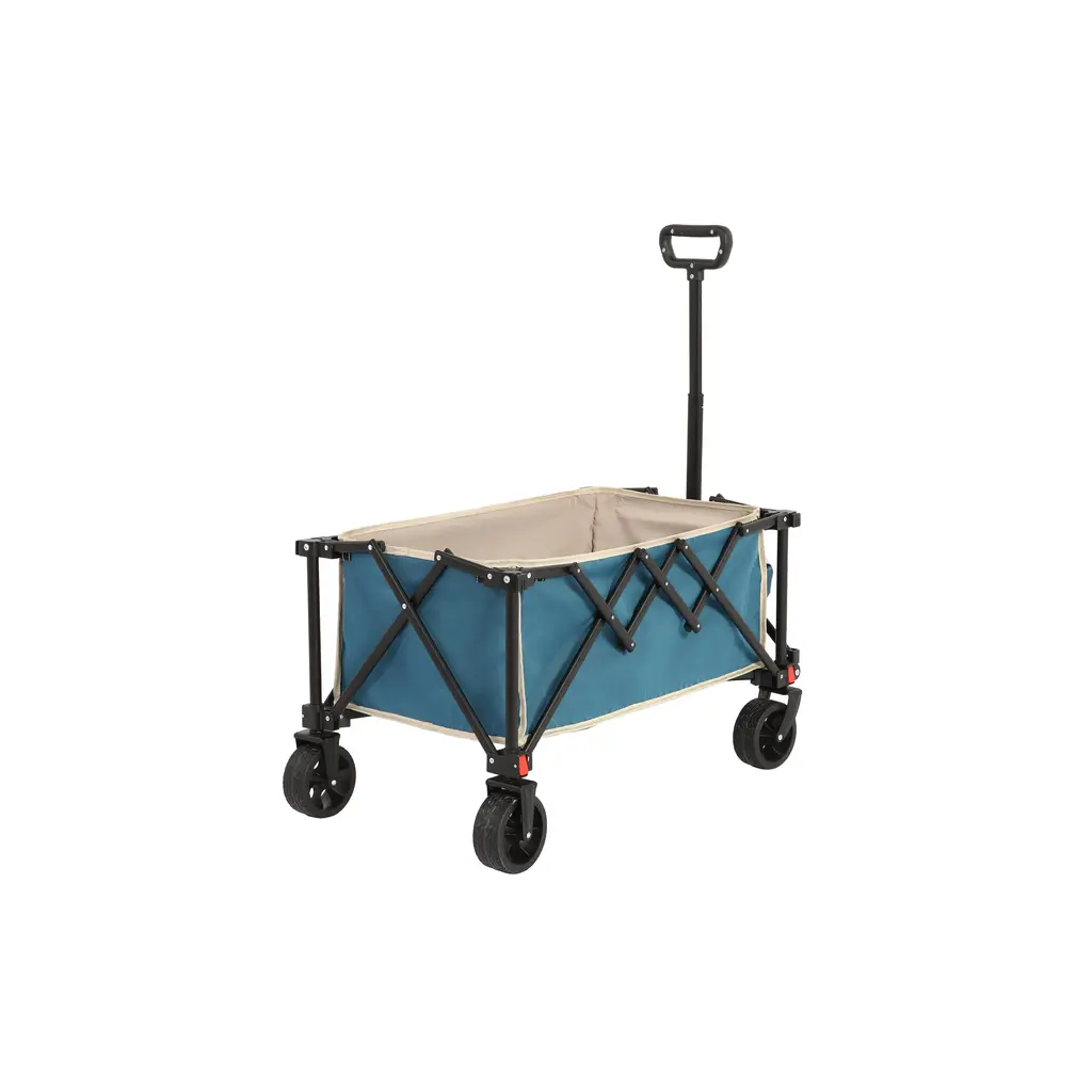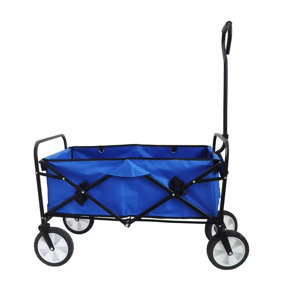 Sturdy and Durable The frame of the folding cart is made of high quality steel for reliability and durability. Capable of carrying camping gear, garden gardening items, sundries and other items. And it can free up space on both sides for pulling longer and wider loads. Removable Design The four wheels can be removed at the touch of a button with the red button on the side, and the fabric can be quickly removed. It's easy for you to clean, while removing the wheels in their folded state saves more space, and you can store them in a small case when not in use. Quick Setup and Folding The multifunctional collapsible cart can be quickly and easily unfolded or folded, which is very convenient for you to go to the supermarket, carry goods, or go out to play. It can save a lot of space when folded and you can place it in the corner of the trunk of your car. Automatic Rebound Handle The handle of the camping cart is designed with an automatic rebound feature, so you won't have to worry about accidentally smashing your foot or tripping over it like you would with other handles. With one-touch telescoping, you are able to adjust the height at will. Folding Wagon Carts Folding Wagon Cart with All Terrain Wheels Blue Color Blue Product Dimensions 30.31'' W x 18.90'' D x 17.72'' H Recommended Uses For Product Camping Shopping Sports Fishing Fabric 600D oxford fabric Weight Limit 132 Pounds Frame Material Steel Wheel 5x1.2' PVC Volume 80 liters Carton size 1set: 17.13'' W x 13.39'' D x 7.48'' H Item Weight 15.43 Pounds Country of Origin China