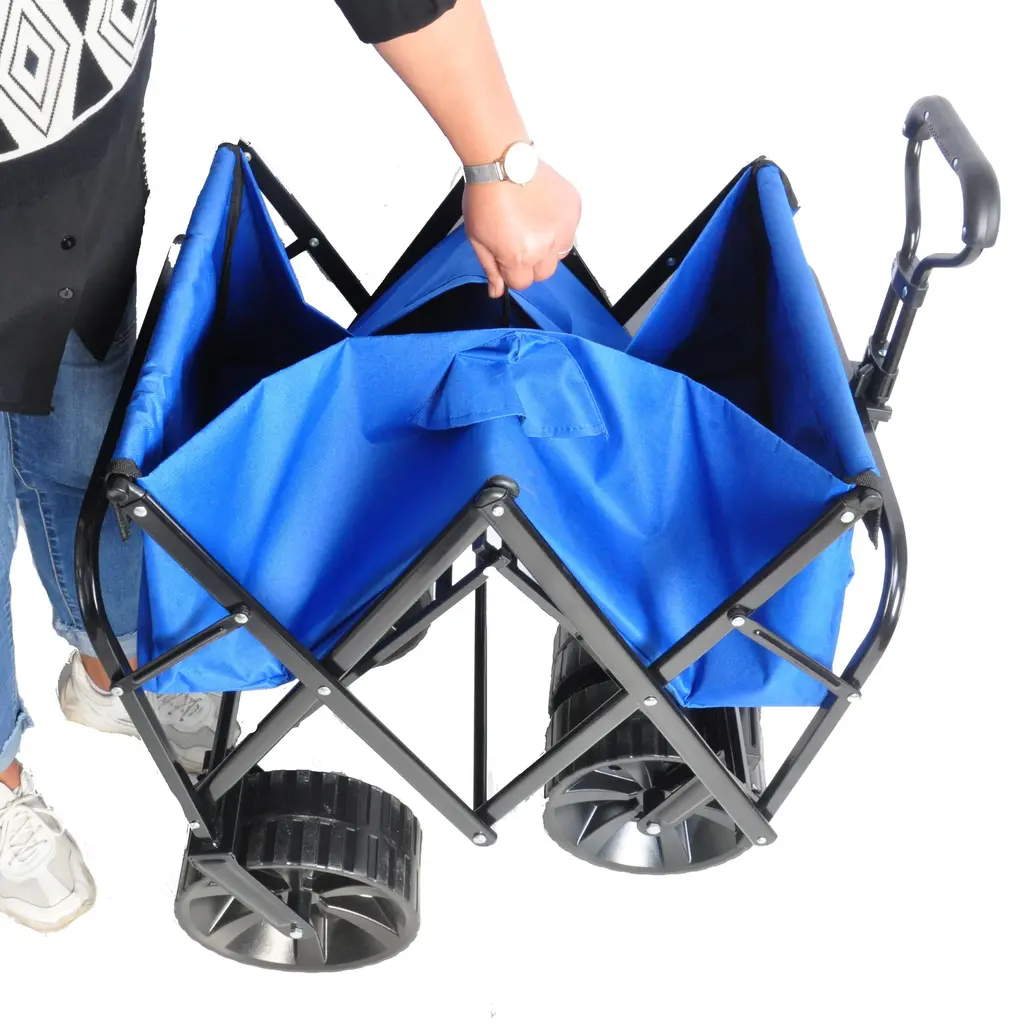 Carry supplies to the beach, park, or anywhere else with this convenient rolling cart. This wagon features large rubber wheels that are suitable for hard ground and sand alike. The foldable design lets you easily store this cart in your car or house when not in use.Features: