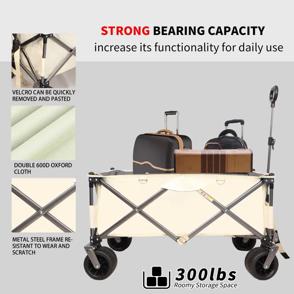 Folding Wagon, Heavy Duty Utility Beach Wagon Cart For Sand With Big Wheels, Adjustable Handle&drink Holders For Shopping, Camping,garden And Outdoor